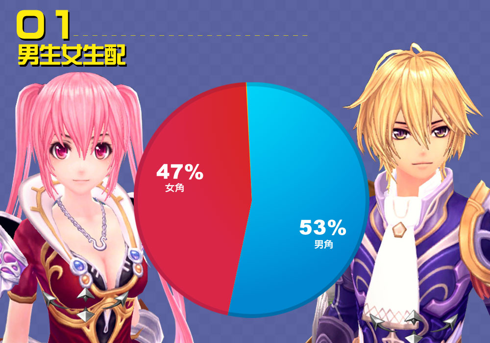 從圖表中可以看出來,在《幻想神域 Online》中不論男生人物還是女生人物都很受到大家歡迎。
