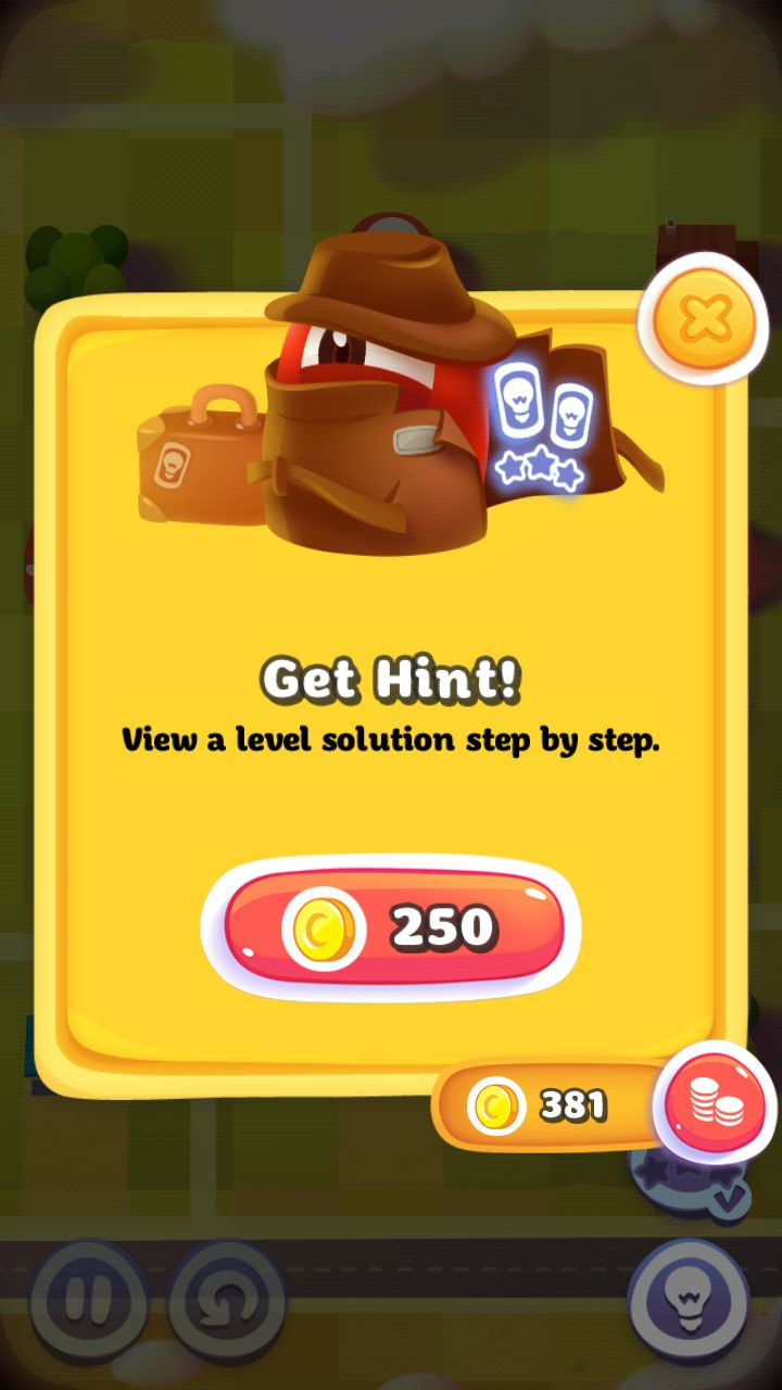 到了更後面的關卡,遊戲還會綜合各種布丁怪獸和場景的機關,難度也會跟著越來越高,萬一玩家真的想不到解題的辦法,遊戲還有個貼心的設計,就是在右下角會出現「提示(hint)」的按鈕,按下去的話就可以得到關卡的行動提示,要注意的是這個提示功能是有限制使用次數的,用完後除了能在遊戲中慢慢收集之外,就只能花錢購買囉!