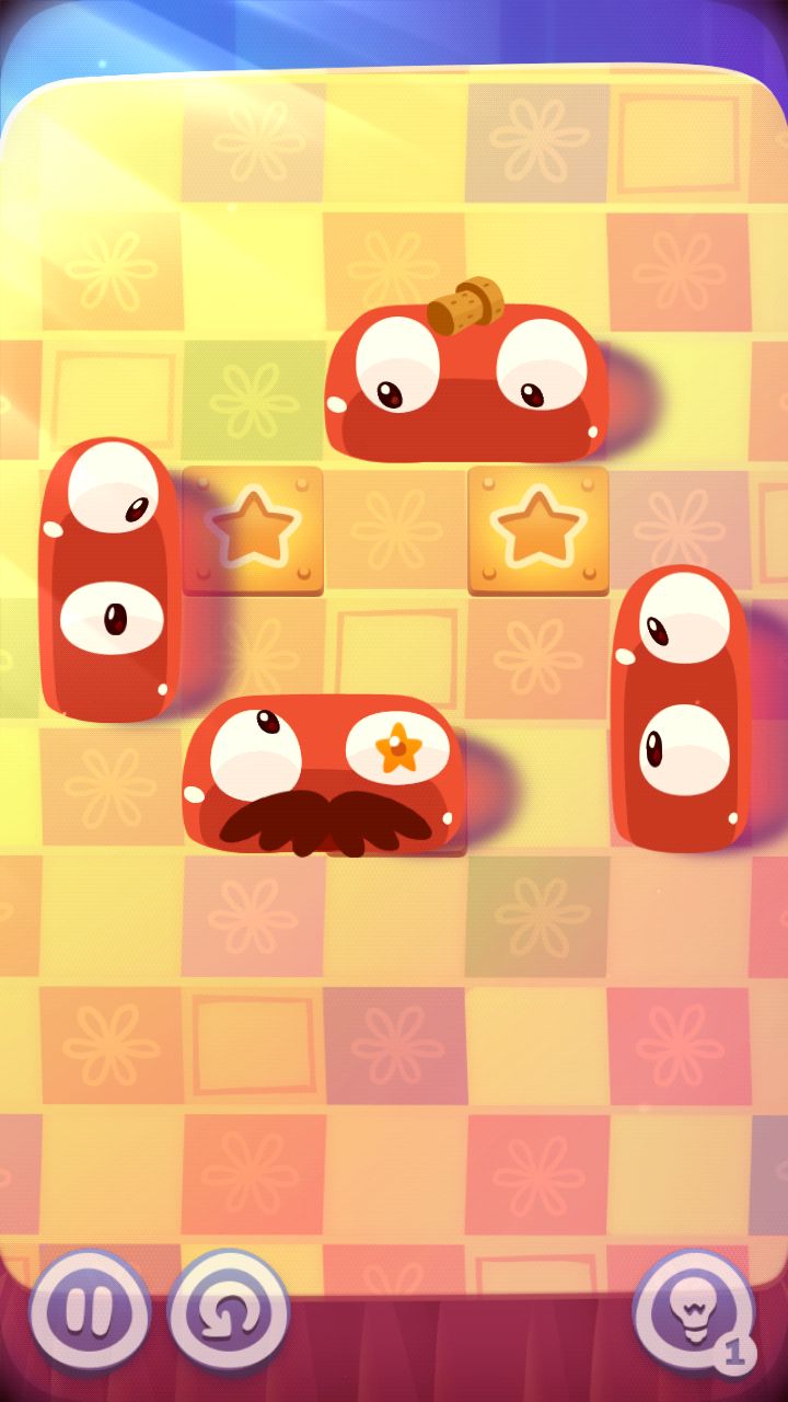 遊戲的玩法非常簡單,就是拖動畫面上的布丁怪獸,讓關卡中全部的布丁怪通通「黏作夥」就好了-不限任何形狀,但這樣玩起來未免太簡單,所以玩家注意看到關卡中,地板上會有幾處特別標示出「星星」的圖樣,想要拿到關卡的「三顆星」最高評分,就要讓你的布丁怪獸在最後大團圓的時候,一定要有布丁壓在全部的星星圖案上才行,這也是遊戲最需要玩家動腦筋的地方。