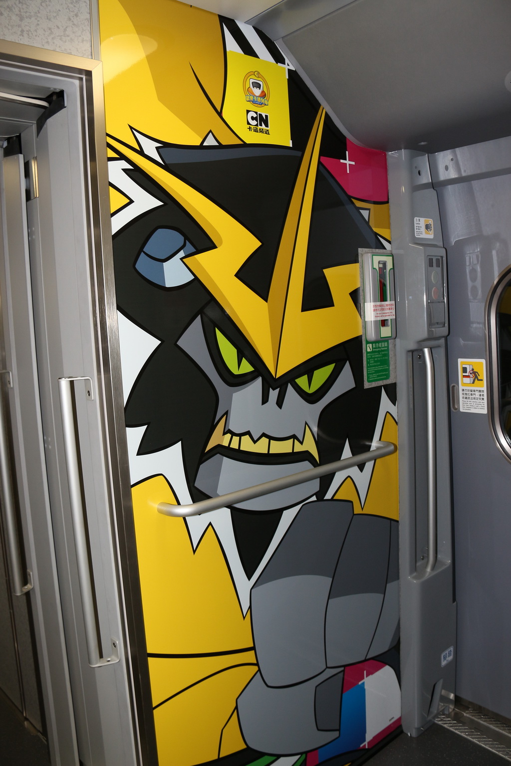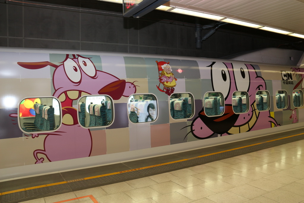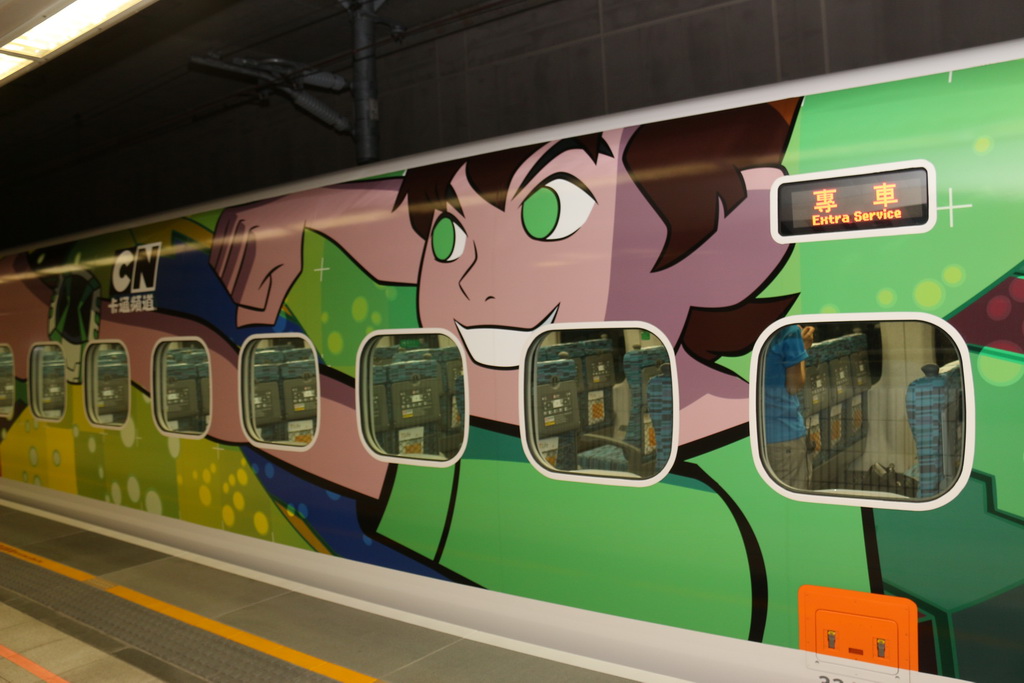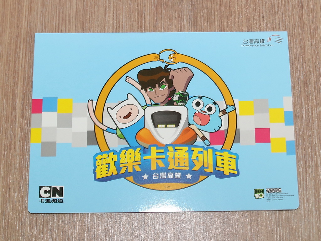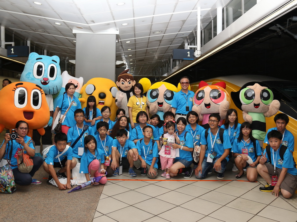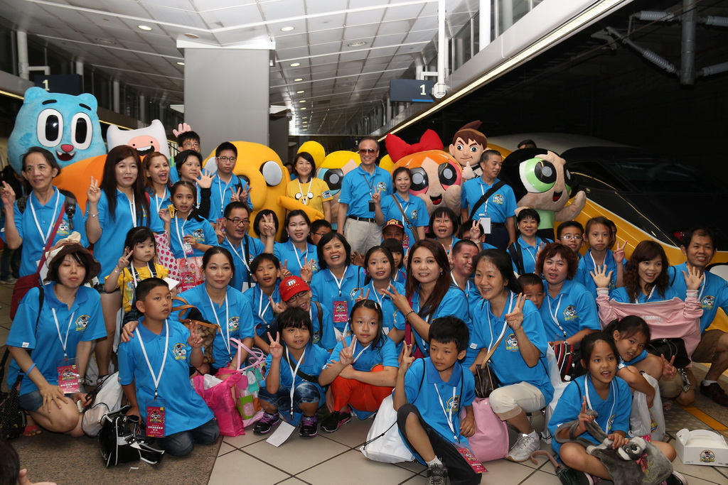 台灣高鐵與卡通頻道合作彩繪列車,從去年底就展開密切合作,將於 22 日正式上線。21 日早上台灣高鐵招待喜憨兒基金會、天主教善牧社會福利基金會共 300 位小朋友搶先搭乘與卡通頻道合作推出「歡樂卡通彩繪列車」,除了高鐵公司董事長歐晋德全程陪伴外,《探險活寶》卡通明星「老皮」也特地以廣東腔客串列車長與小朋友問好與互動。