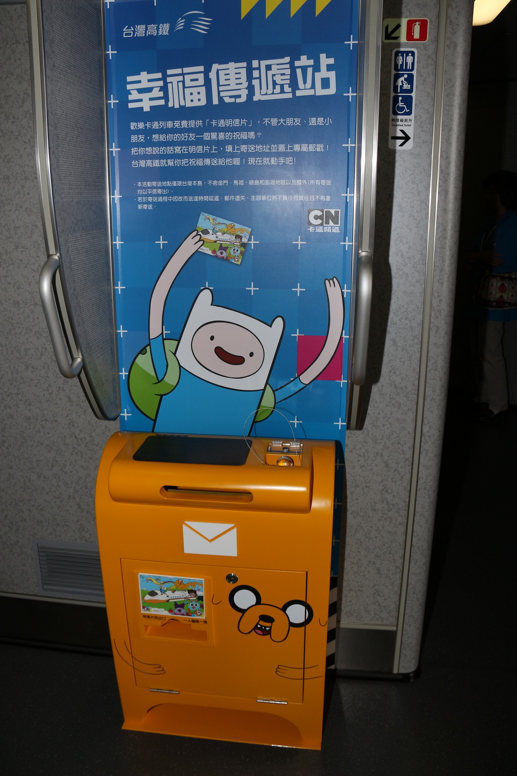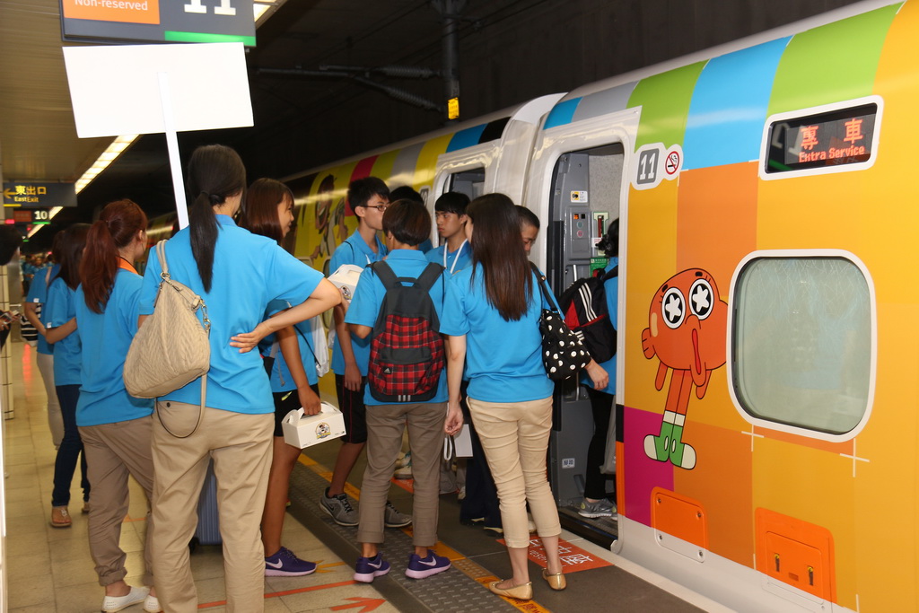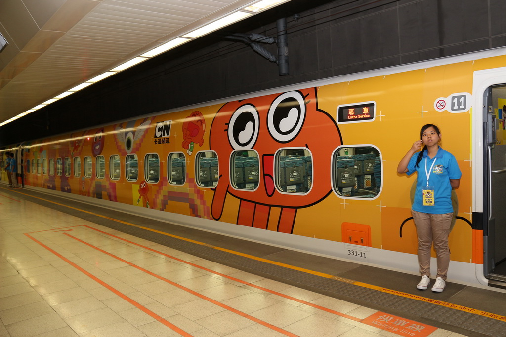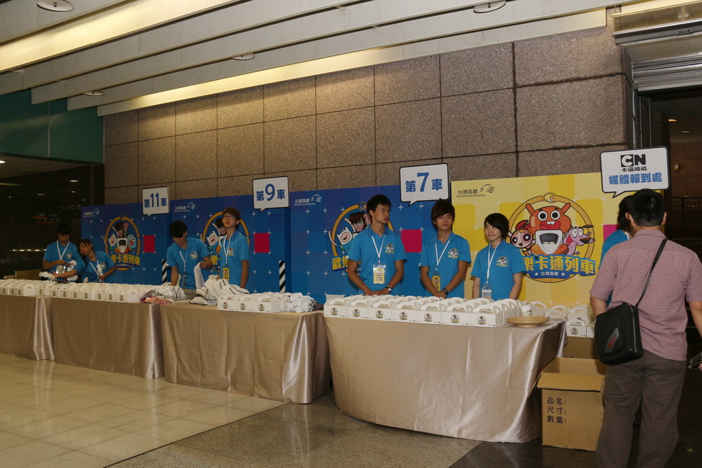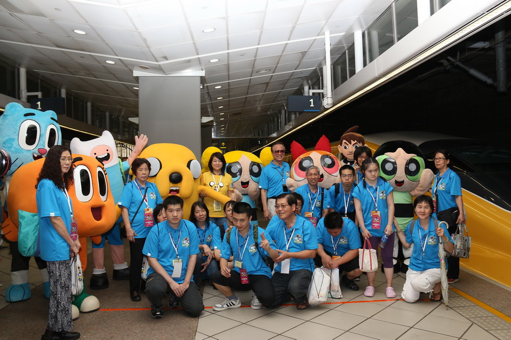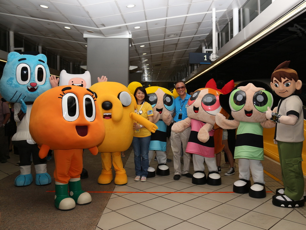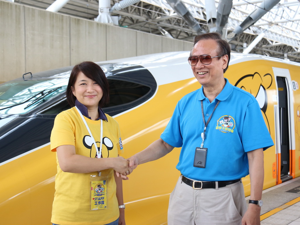 列車途中停靠台中高鐵站,卡通頻道娛樂事業部廣告業務執行總監黃樂儀特地飛來台灣,並與高鐵公司董事長歐晋德接受媒體聯訪。