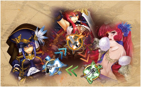 海賊幻想四大職業,當中:劍=戰士,槍=槍械師,杖=魔女/法師,