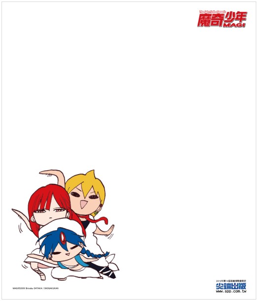 日本年度銷售僅次於《航海王》的最新人氣作品《MAGI魔奇少年》,是以「一千零一夜」為設定的熱血冒險作品,2009年起於日本《周刊少年Sunday》連載,幻想式的華麗戰鬥與緊扣人心的劇情大受好評,於去年底眾望所歸改編動畫化,日本累計銷售也來到1,100萬冊,中國大陸更於2012年起在《龍漫少年星期天》連載,在亞洲區人氣高漲,被視為新一代裡最強的少年漫畫!