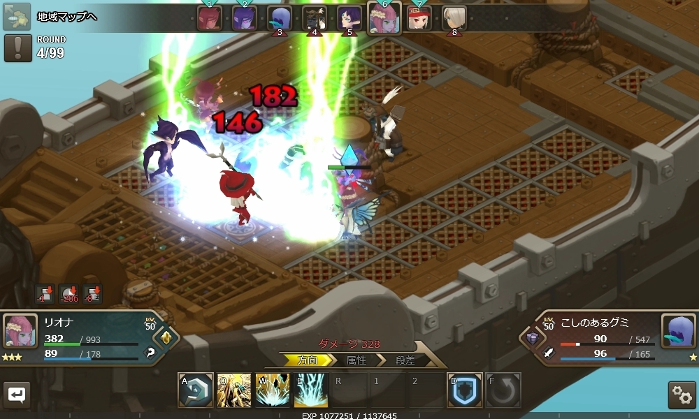 在戰鬥中,要一邊意識到近距離/中距離/遠距離這些對手之間的距離,以及弱点屬性/耐性屬性這些角色單位之間的屬性相剋來與敵人交戰。