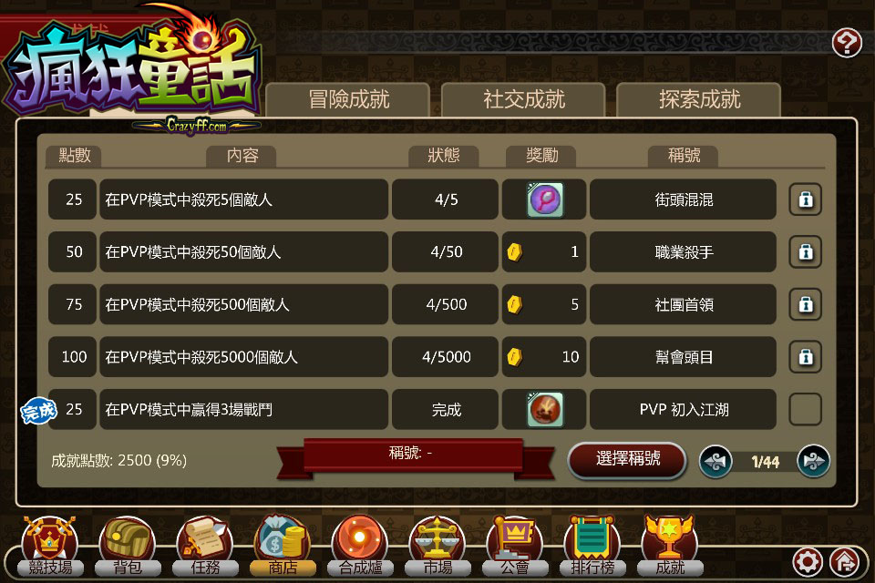 瘋狂童話》真正樂趣的你絕對不能錯過!完成每日任務可為玩家提供每日必需的補給物品,令你能得不升級武器所需的資金及素材、打怪所需的藥水以及為數不少的經驗值!好友任務令你在童話世界的體驗不再單調。你可以與親朋好友並肩作戰,一起合力通過重重難關以取得更高的稱號及寶物!而最後要介紹的活動任務為期間限定的任務。玩家可以於活動任務中獲得期間限定的道具及裝備!一經錯失,千年難追!想取得限定物品的玩家們千萬要時刻注意啊!