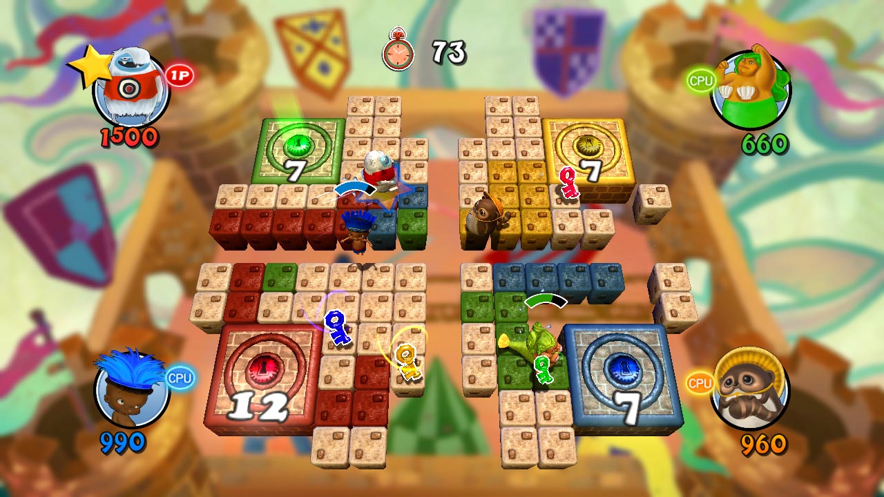 你走過的路就會變成你的領地,當取得自己的鑰匙之後,回到據點就可將領地轉換為分數。當然,你的領地也會被其他玩家踩過而被搶走。除了據點有時會隨機變化之外,記得使用場上的磁鐵道具將其他對手吸到你身邊,阻止他們搶奪你的領地。