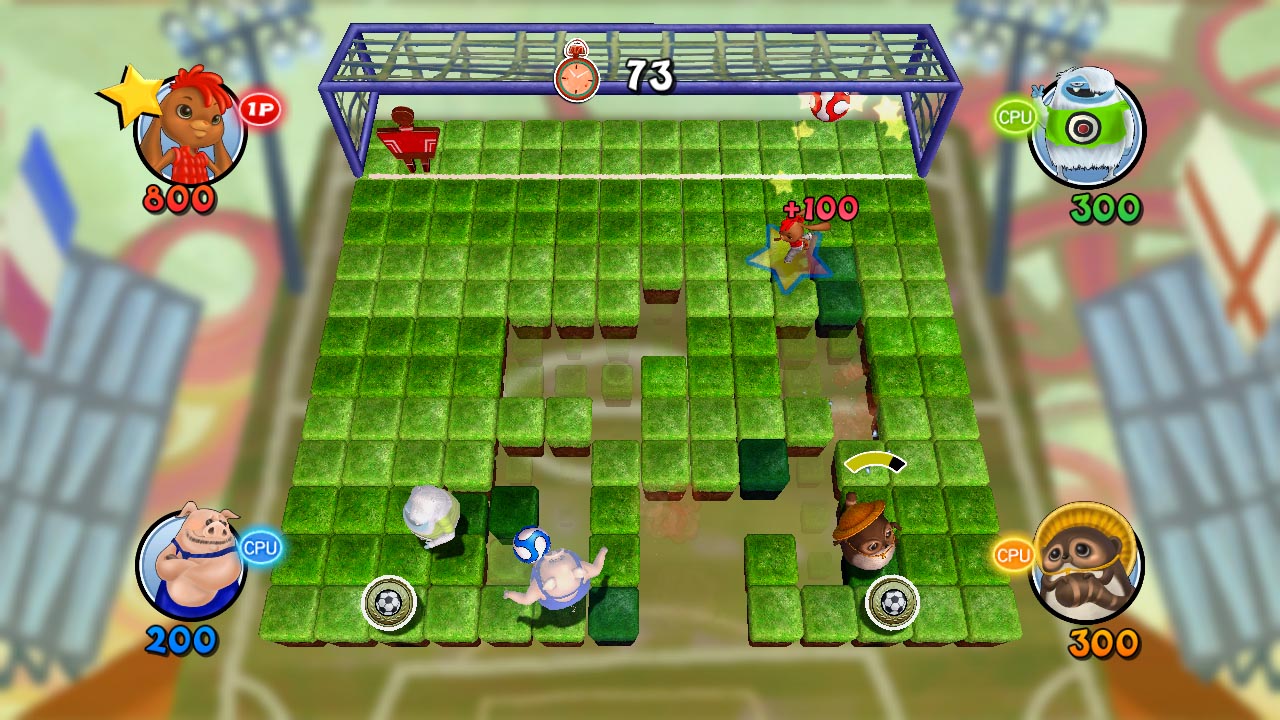 想辦法取得足球,並把球射入球門來獲得分數。比賽時間結束時,分數最高者獲勝。除了單顆的足球外,有時也會出現 1 次 3 顆的足球,只要順利將球踢進球門,就可以 1 次獲得 3 倍的分數。當然,在搶分的過程中,也別忘了要阻檔一下對手的進攻喔!