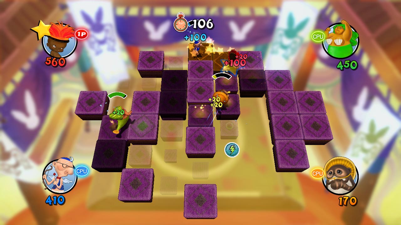 玩家可以透過行走把地板踩掉來獲取分數,當掉落場外時則會扣分。當出現金色的地板時則可獲得較高的分數。場中的閃電道具可暫時讓你的對手無法行動,比賽終了時,分數最高的獲勝。