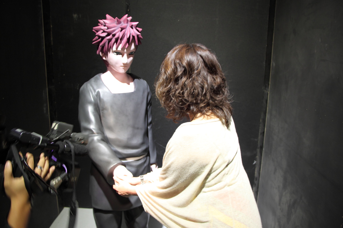 於 10:30 左右,竹內順子抵達會場後,首先由主辦單位帶領實際參觀會場。而竹內順子一邊參觀也一邊在會場中的經典場景和作品中角色合照。參觀之後她也表示,會場比她想像中的大很多,場景的布置也十分的用心相當的重現原作場景,如果可以的話她希望可以再重新慢慢的仔細逛展。至於問到了對於展覽中印象最深的場景是哪部分這點,竹內順子表示雖然每個場景都很棒,不過她尤其對於「木葉忍者村」中,鳴人常去的「一樂」拉麵店感到印象最深刻。她最後也表示,「火影忍者疾風傳首部展」中展場規劃相當寬廣、互動設施也很多,非常適合全家大小一起來參觀。