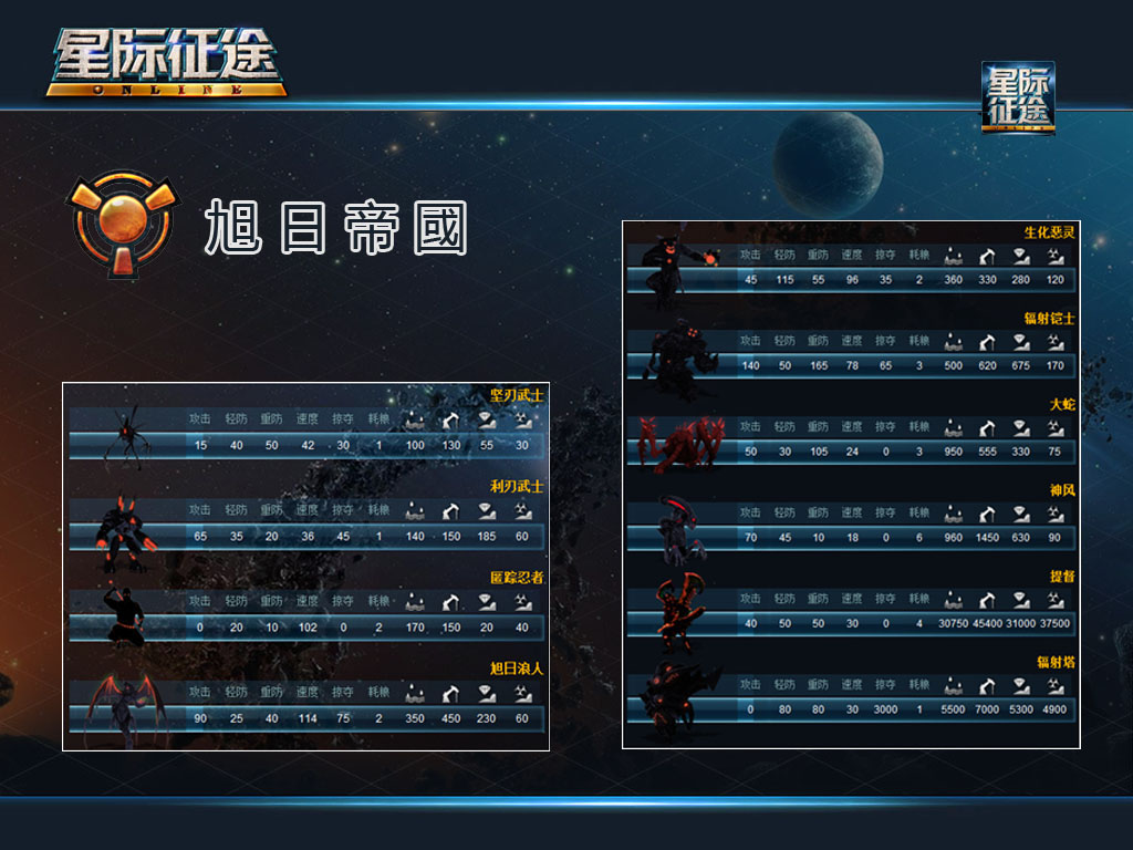 inAPP 平台旗下手機戰略遊戲《星際征途》即將於 8 月初啟動封測,官方今日同步釋出遊戲中三大種族「人類聯邦」、「旭日帝國」、「鷹之神界」的戰略特性及軍隊數值表,供有興趣的玩家參考。