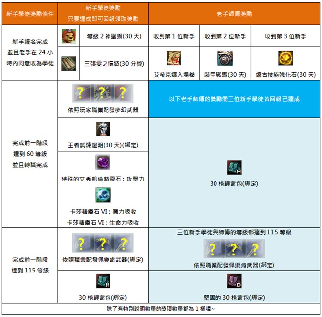 洛汗,並且當新加入玩家的專屬的老手師傅,只要符合條件的新手學徒或老手師傅都可以獲得各階段的獎勵,一起到達指定等級領好康吧!