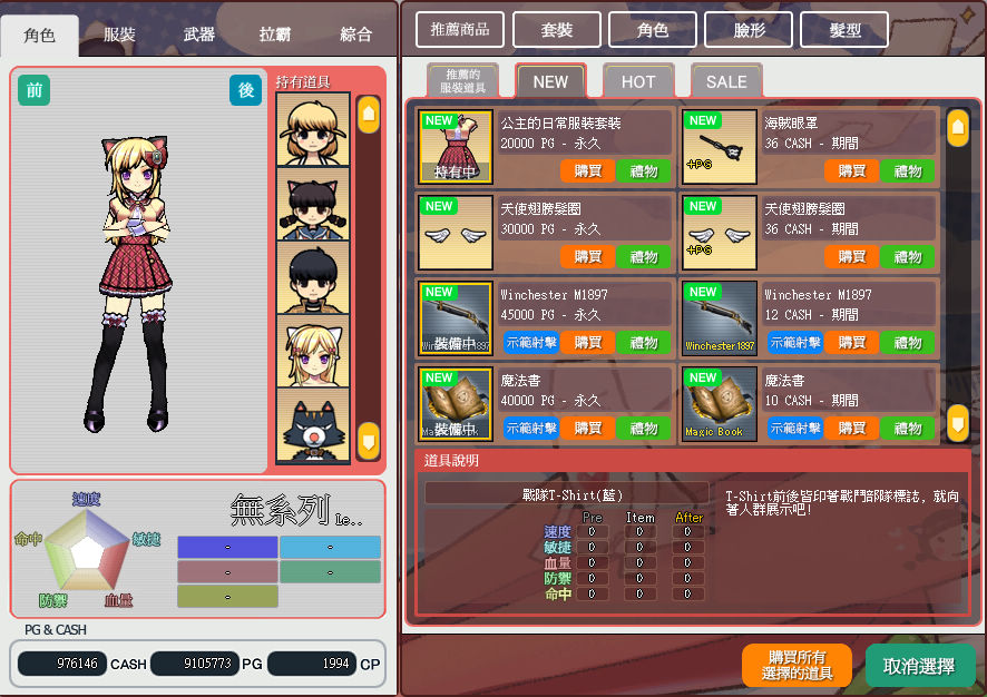 改版後,玩家進入商城可看到官方推薦商品,並可依照『推薦服裝』、『NEW- 新商品』、『HOT- 熱門商品』、『SALE- 促銷商品』四大分類來選擇想要購買的商品,未來也將不定時推出限時特賣品,來回饋玩家。