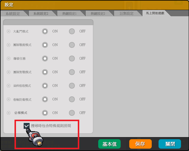 為方便玩家想要進行自訂的特殊規則,增加系統圖示來提醒玩家該房間為特殊規則房。改版後,創立房間時勾選『特殊規則』,並於房名輸入想要建立的特殊規則,就能方便統一篩選想要進行的比賽。例如篩選狙擊房、近戰武器房、禁 XX 武器房等等。