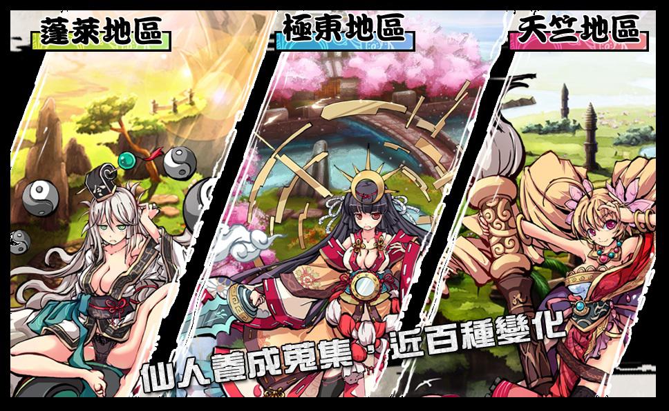 在森羅萬象之境的幻想世界中,仙人各自分散居住在三大區域:充滿東方神幻風格的蓬萊仙島、常年盛開櫻花的極東高原、以及隔著恆河與冰雪山脈相望的天竺幻境,而各區的仙人分別取自中國、日本以及印度的神話。
