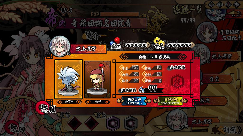 此外,玩家還可以透過「升階系統」提升仙人品階,使仙人變得更強,也可用「兵種置換」來更換聽從仙人號令的戰鬥小兵類型,而這種高自由度的角色養成和策略性的隊伍編制便是