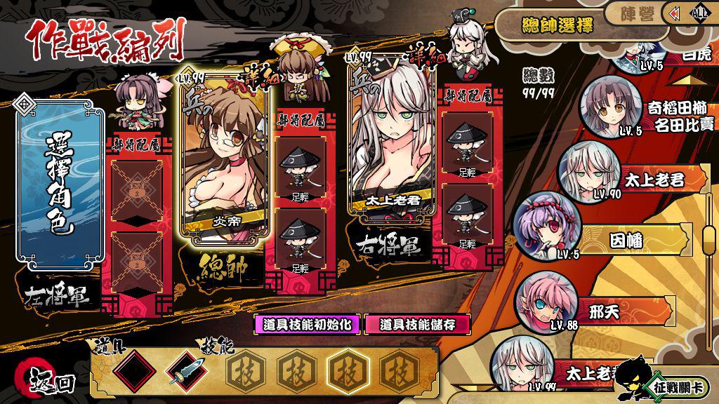 編隊介紹,在編隊時除了可編制仙人與小兵外,還可事先選好對戰鬥有幫助的特殊物品