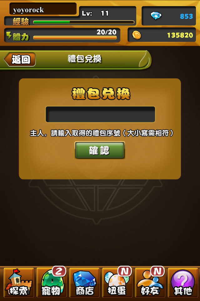 獲得禮包序號時,可於「禮包序號」功能中兌換,即可立即獲得禮包內容。