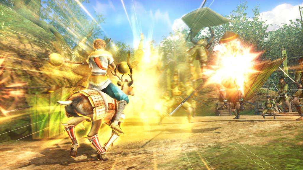 以玩家操作武將身分復活的豐臣秀吉。依然有著將敵人抓起粉碎的戰鬥型態,並且抓技在攻擊面上也變得更為積極了!