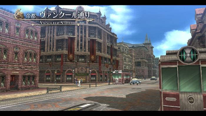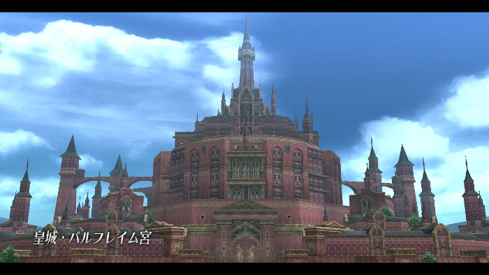 視線範圍內可以看見皇帝的住處,同時也是帝國政府的巨大富麗「巴爾弗雷宮(バルフレイム宮)」,廣場中央也樹有地國中興之祖「德萊凱爾斯大帝」的雕像。