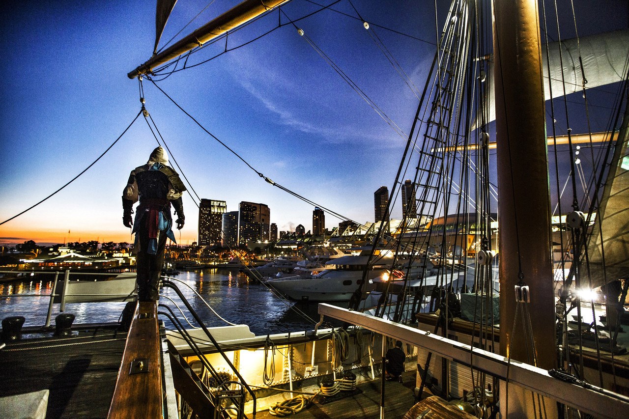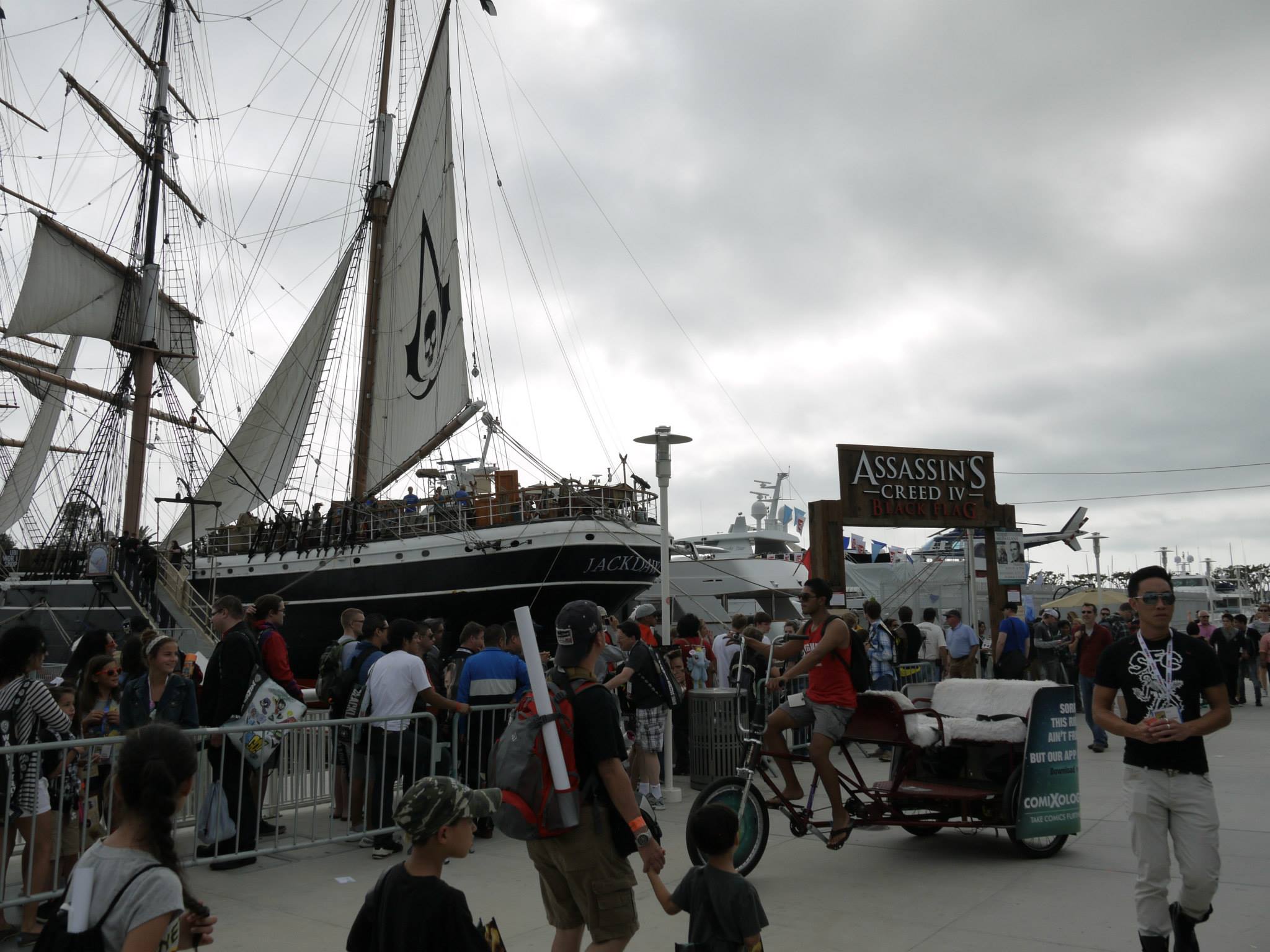Ubisoft 今日公開《刺客教條 4:黑旗》日前在美國聖地牙哥 Comic-Con 動漫大會上的展出花絮,由社群經理 Gabe Graziani 帶領玩家登上世界上現存最古老的服役帆船、真實版的「寒鴉號」,讓玩家充分體驗當代時空背景下的海盜生活;活動現場更展出《刺客教條 4:黑旗》單人模式最新內容並提供多人模式現場試玩體驗。