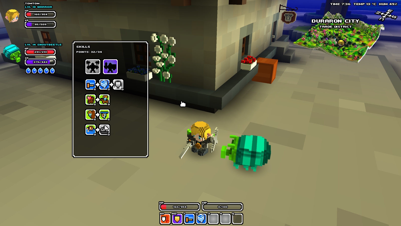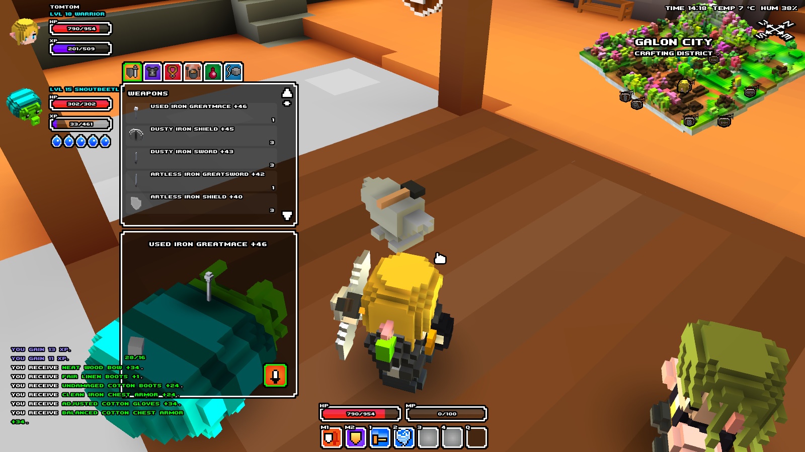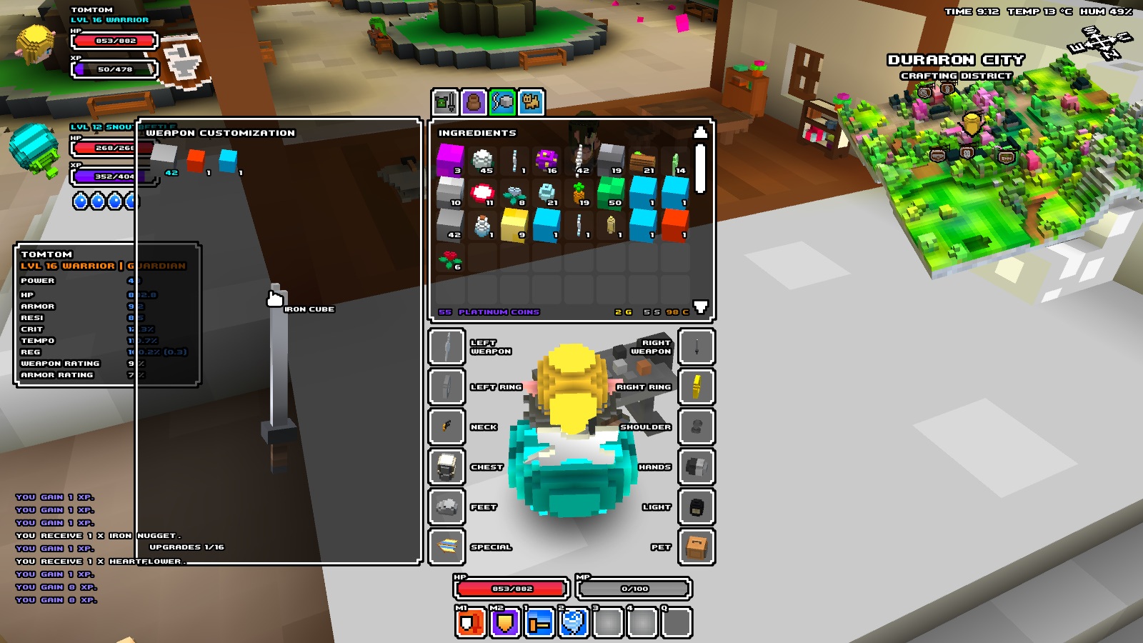 Cube World 》的自訂裝備是能夠將材料一顆顆得加到裝備上,並且可以看得到外觀的改變。比較特別的是,如果使用稀有的材料來自訂裝備,也能夠提升裝備的屬性能力。