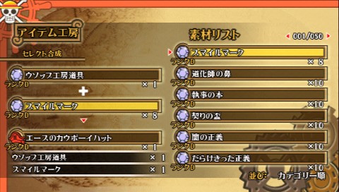 裝備上完成的「艾斯的牛仔帽」的話,可使防禦跟技巧的數值急速提升!找出自己喜歡的組合吧!