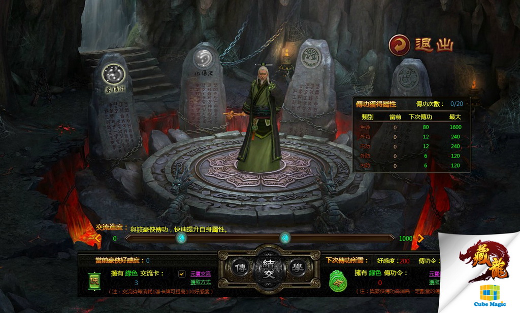 想個法子跟豪俠們來個近距離接觸吧!只要與任何豪俠進行交流,交流好感度都會提升為 120 點唷!趕緊趁這個機會與他們喝喝小酒、聯絡感情,就可加緊速度強化大俠們的武學技能喔!