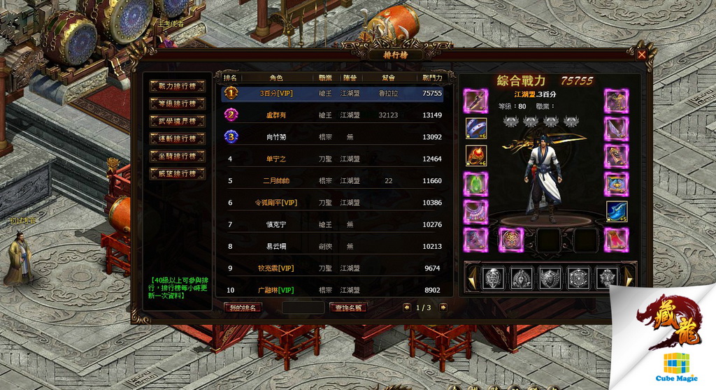 大俠們初入險惡江湖不免驚!開服日起五天內,等級前五名的玩家們將會得到珍貴的元寶獎勵喔!千載難逢的機會,速速練就武林絕學,穩坐您的高人等級吧!排名越高,獎勵越豐盛唷!