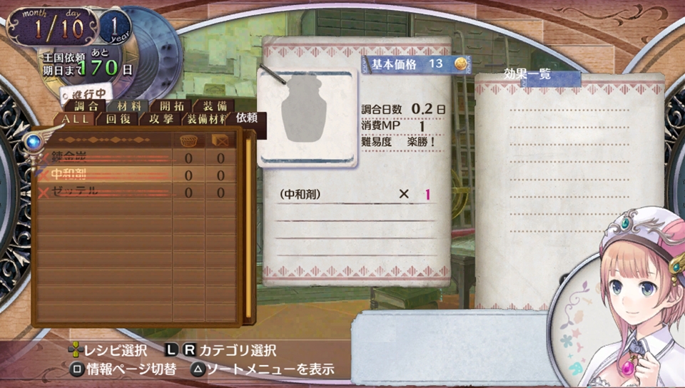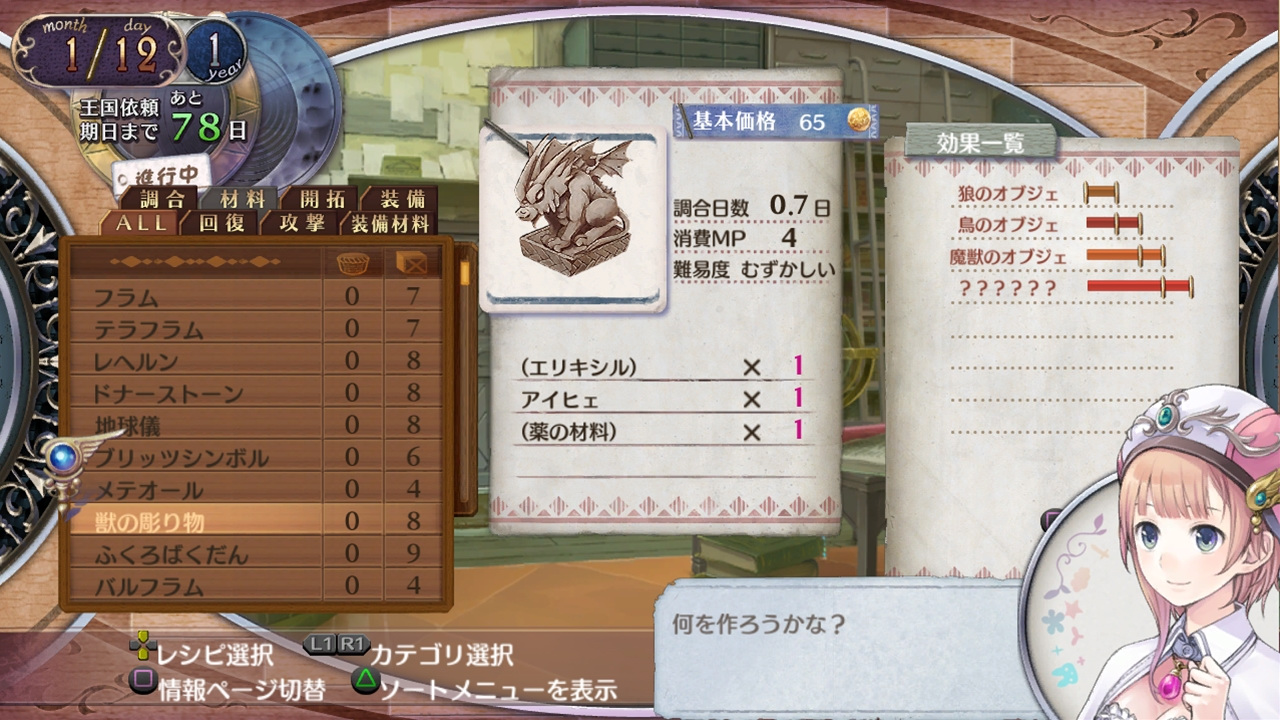 在調合上因為可任意選擇生產道具的特性,所以在製作“最強道具”的樂趣也提升了不少。