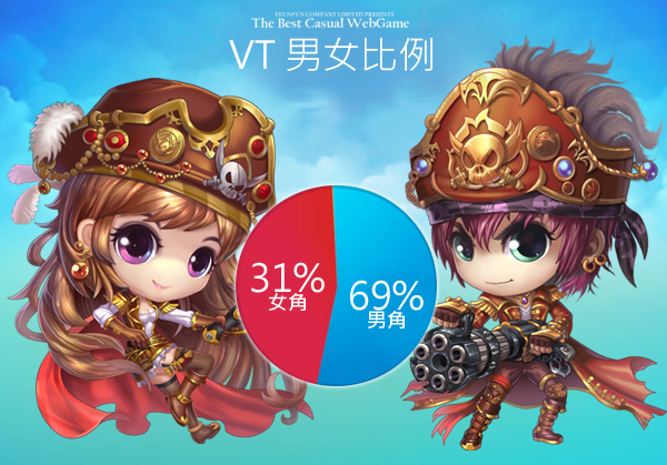 新彈彈堂》精英測試的玩家,男女比例為 69:31,女性比例和一般回合制 RPG 對戰網遊更高,顯見《