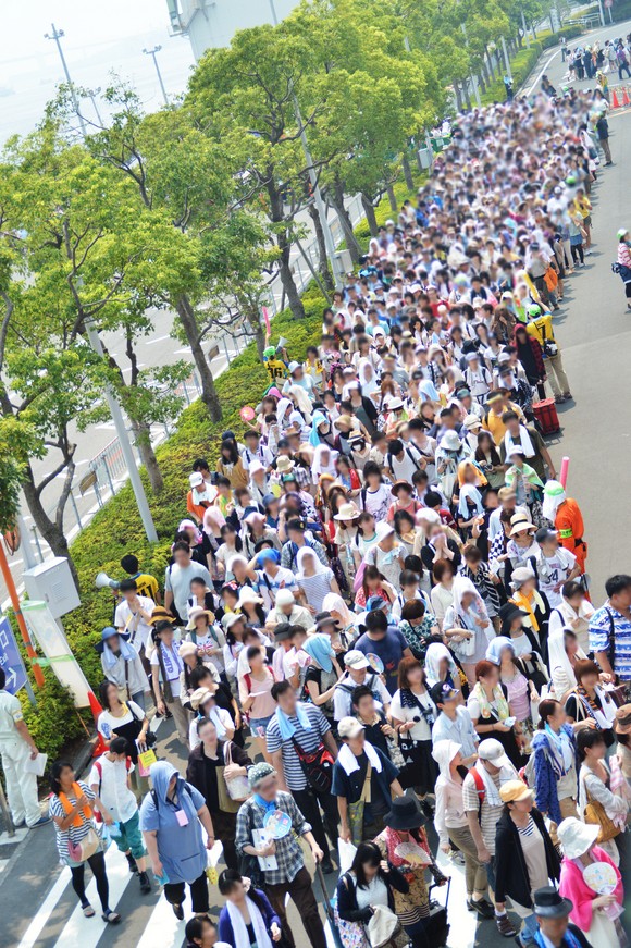 忍耐著接近攝氏 41 度的高溫,參戰者揮汗如雨地聚集在夏 Comiket 的會場上,小吃攤和便利商店前排滿了等待購買冷飲的人潮。儘管面對著這樣炙人的高溫,仍然有許多 Cosplayer 在專屬的戶外區演出,並且熱情回應攝影師的拍照要求,當然,這些攝影師也同樣對抗著這叫人汗如雨下的熱度和濕氣。