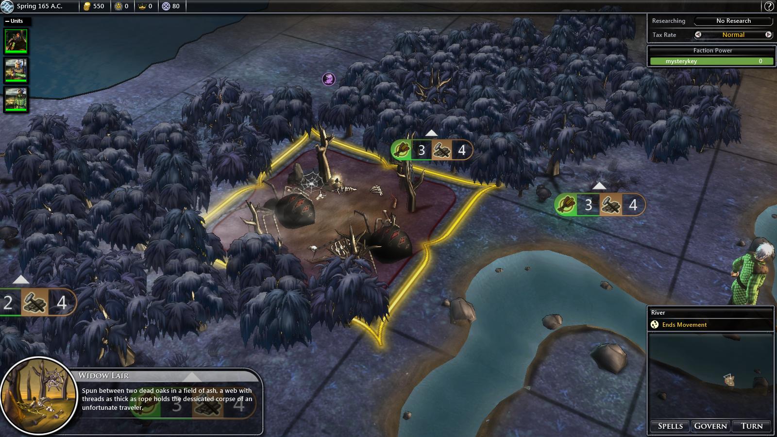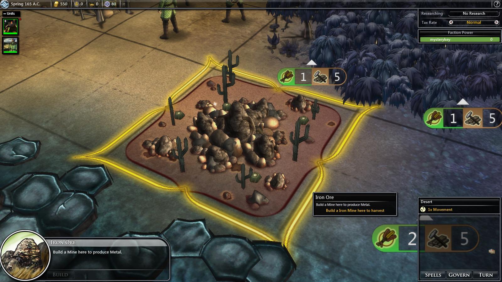 所在位置可建設養蜂場,採收後可降低勢力下所有城市的動盪值 2%(因甜食可安撫人心?)。由於動盪值會隨勢力下的城市總數增加,並大幅降低科研和生產效率,因此對想建立遼闊帝國的玩家來說,蜂群值得注意。