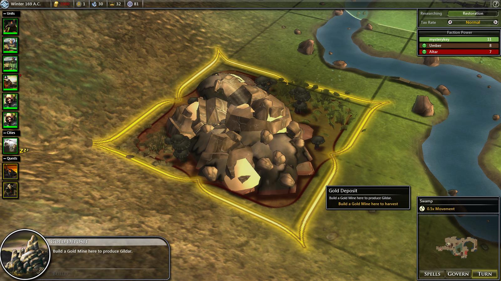 分佈較少,開採後能大幅增加金錢產出。金錢用途非常廣,包括購買裝備與道具、加速單位與建築生產、供養軍隊、向他國購買科技研究等,配合特殊天賦甚至能耗費大量金錢收買敵國城市。