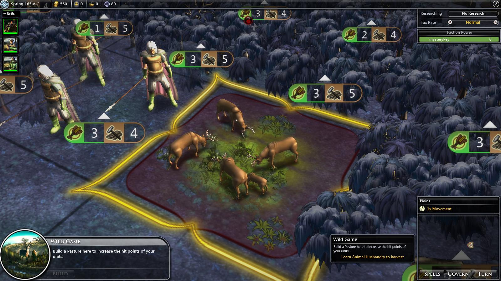 該場所棲息著各式各樣的野生動物,能興建牧場改善飲食,為勢力所有單位帶來血量加成。