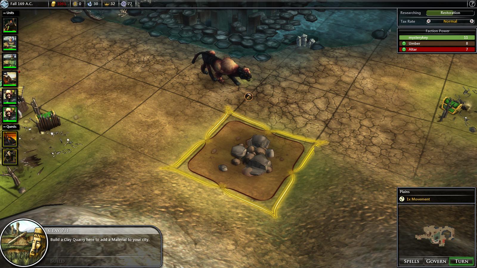 黏土具備燒磚、製陶等用途,能增進城市生產力。黏土礦場與伐木場同樣屬於建設成本較低的建築,建議優先建造。