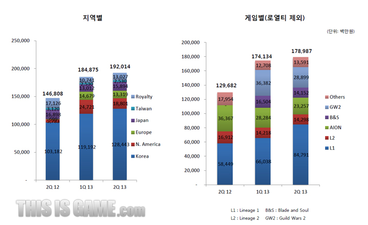 NCSoft 2013 年第二季業績,與去年相比,各方面皆顯著提升