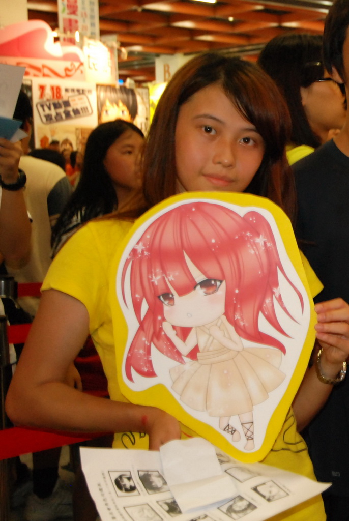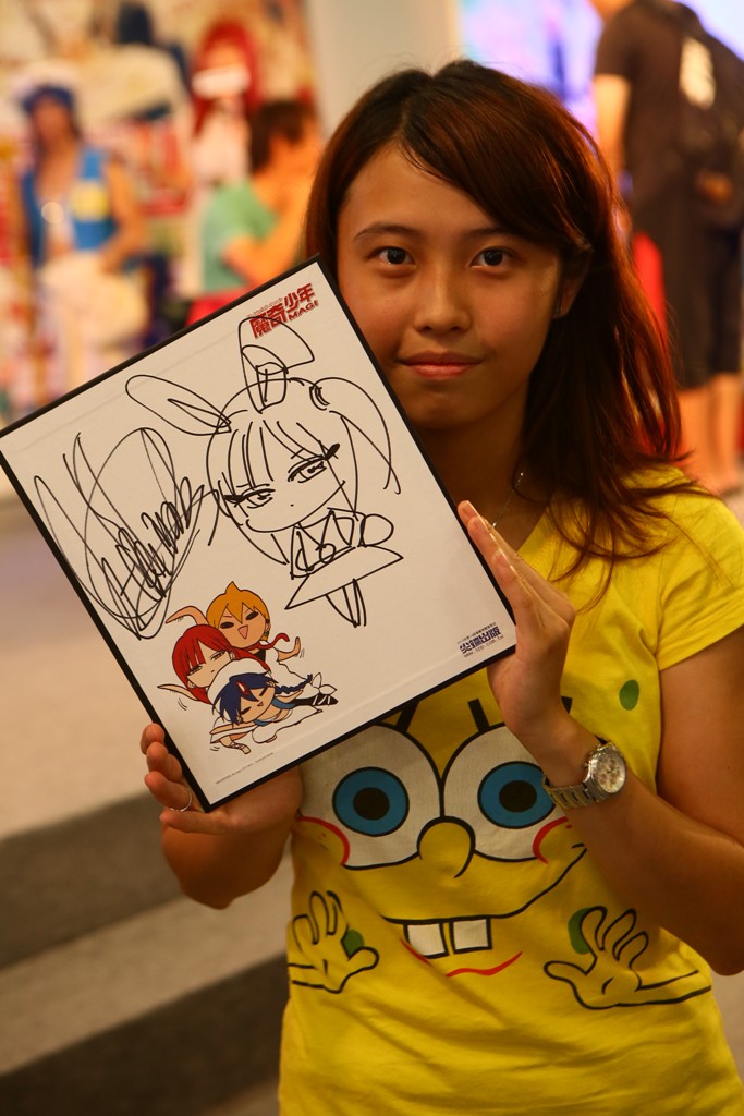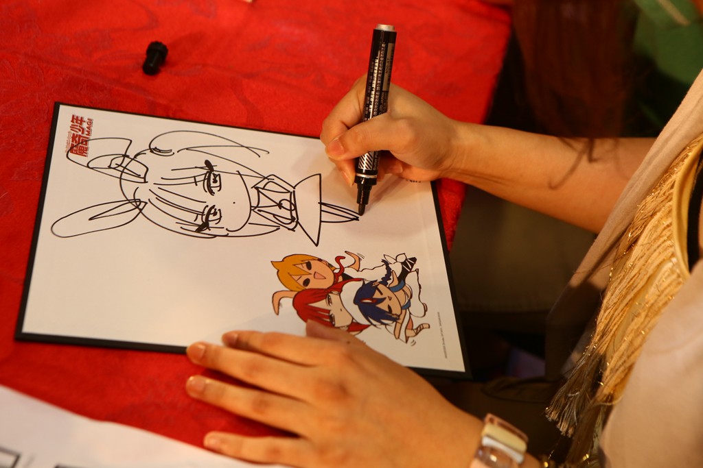 由於老師不願曝光,所以僅能拍攝背影,她正為漫博大會簽名中。