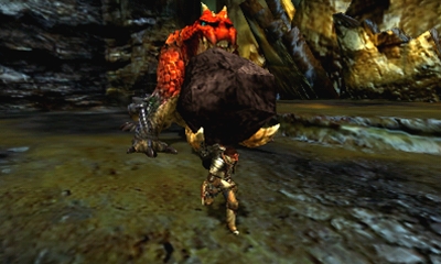 另外「鐵茲卡布拉」會利用下顎,彷彿在說話似的將地面上的岩盤挖掘起來,並以此做為武器。時而利用嘴巴銜著岩塊朝向獵人所在之處撞擊,時而咬碎岩石,使其飛散出去的破片攻擊獵人,可以說有著相當多變的攻擊手段。除此之外,也會利用嘴巴豪爽的將地面上的岩盤掀起,做為保護自身的盾牌。