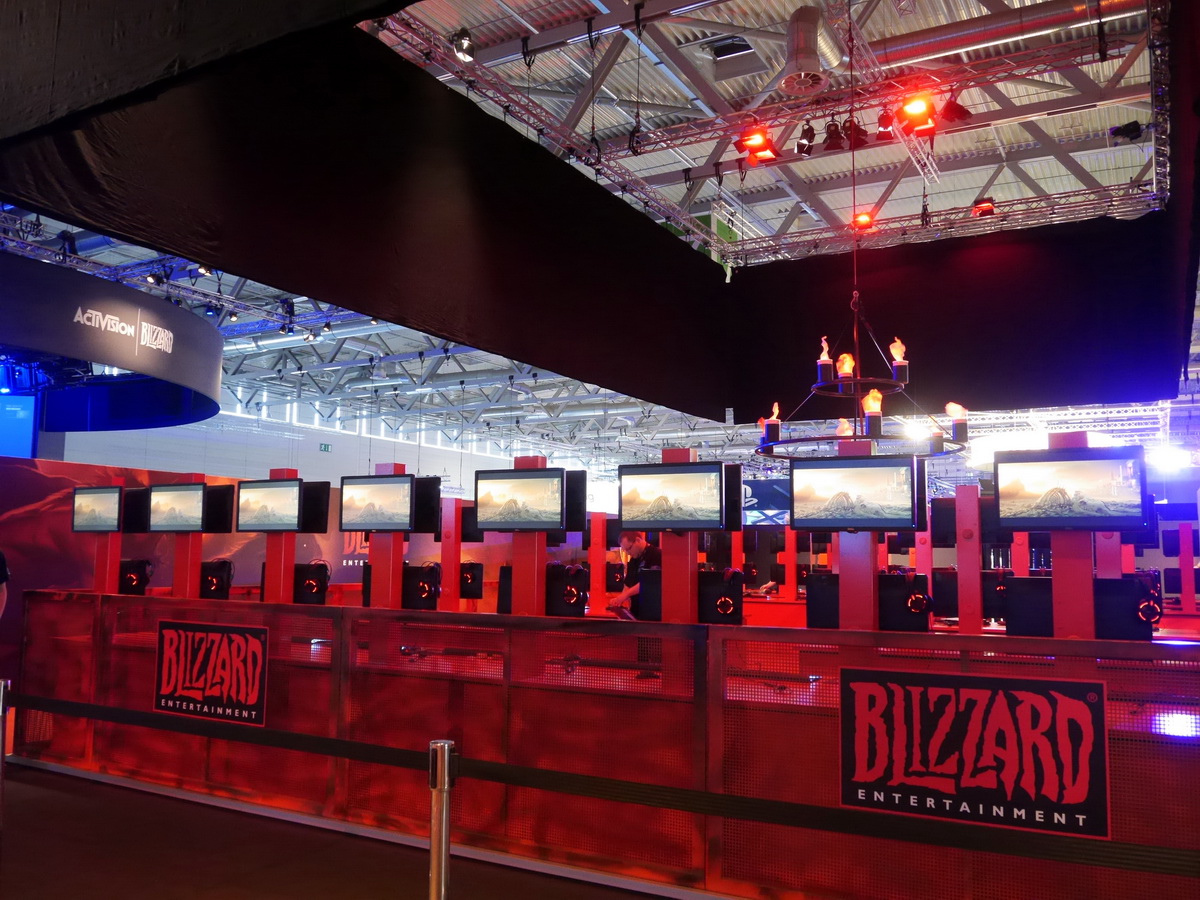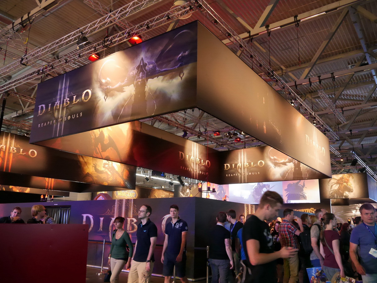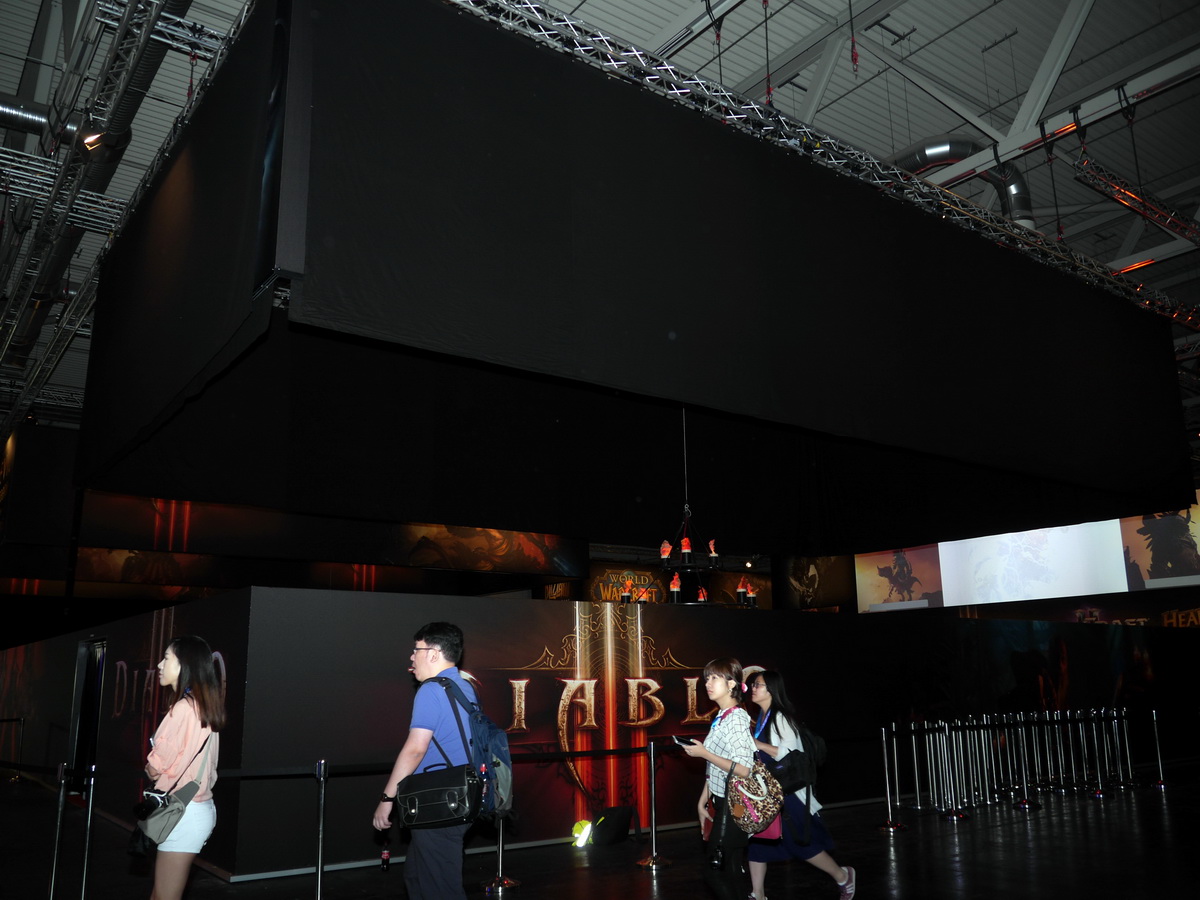 暗黑破壞神 3:奪魂之鐮》之前,展場攤位先以黑色大布蓋住上方宣傳看板,等到 Blizzard 正式公開新資料片後,才正式揭幕並開放試玩,巴哈姆特 GNN 首日把握機會在 Gamescom 展覽現場試玩到新資料片內容,試玩版本限定 20 分鐘,且現場禁止針對畫面進行錄音、錄影等。