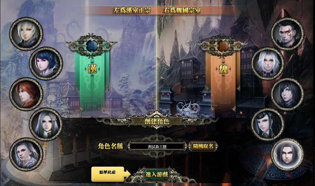 選擇完武將後就要選邊站了,遊戲中提供了漢和魏兩大陣營可選擇,並可以選擇自己喜歡的頭像。漢室的主城比較有仙境的感覺、而魏國則像是魔窟。