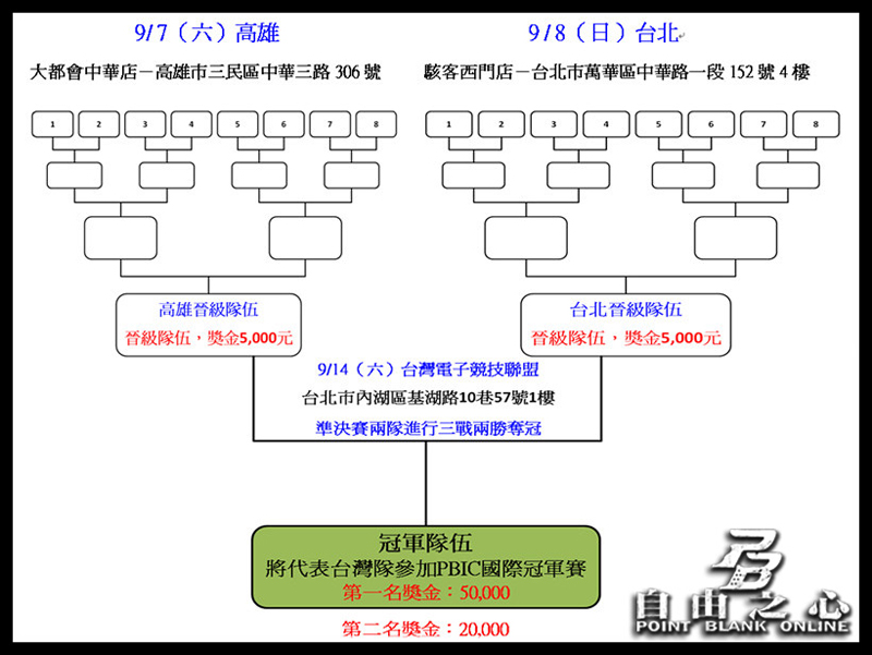 台灣今年將首次參賽第三屆《自由之心》國際錦標賽,並預定於 10 月 5、6 日泰國開打,預計將有 9 個國家出賽,包含台灣、巴西、印度尼西亞、拉丁美洲、中東、菲律賓、俄羅斯、泰國與土耳其,總獎金高達 5 萬美元。「2013 PBIC 國手選拔賽」於即日起開放報名,詳細內容可參考以下資訊。