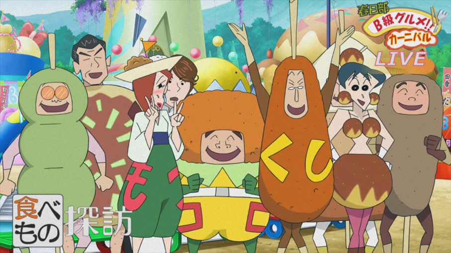 看到「B級美食嘉年華」的消息,感到興奮不已的小新,到幼稚園誘惑朋友們一同前去