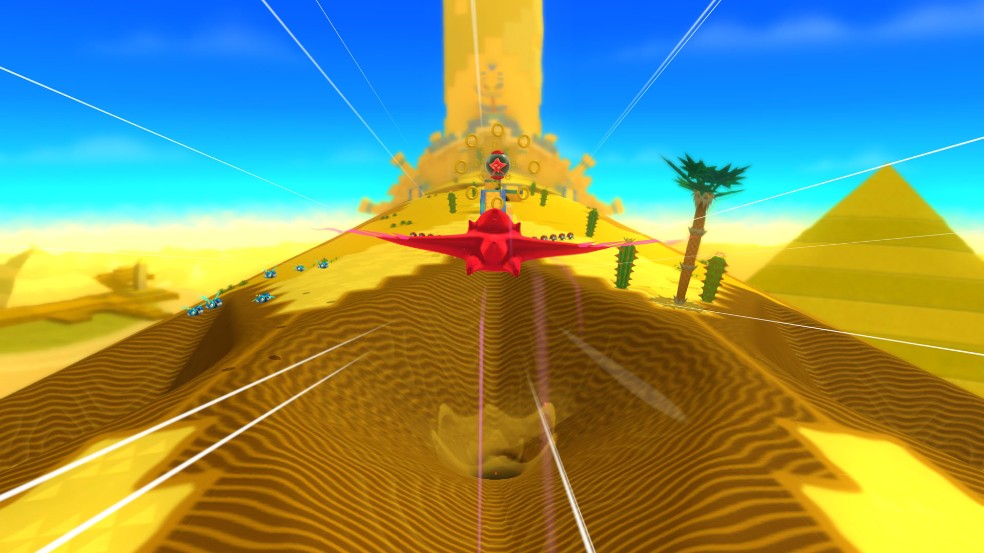 索尼克將可藉由「緋紅威斯普」的力量化身為鷹隼在空中飛舞,高速地在空中自在翱翔!享受至今從未有過飛行快感。使用 Wii U遊戲平板的陀螺儀機能的話,便可透過更具直覺性的操作來自由飛行!
