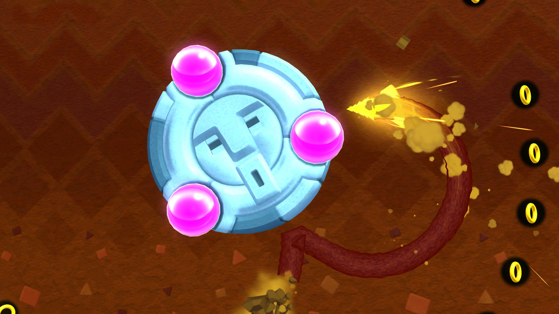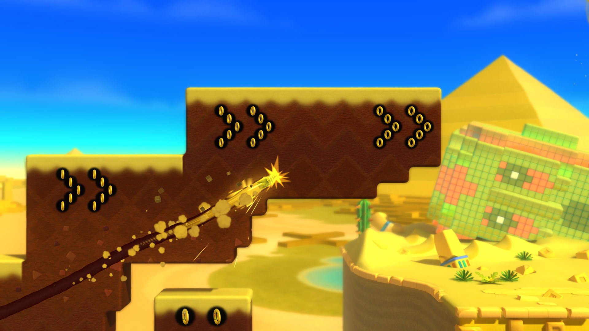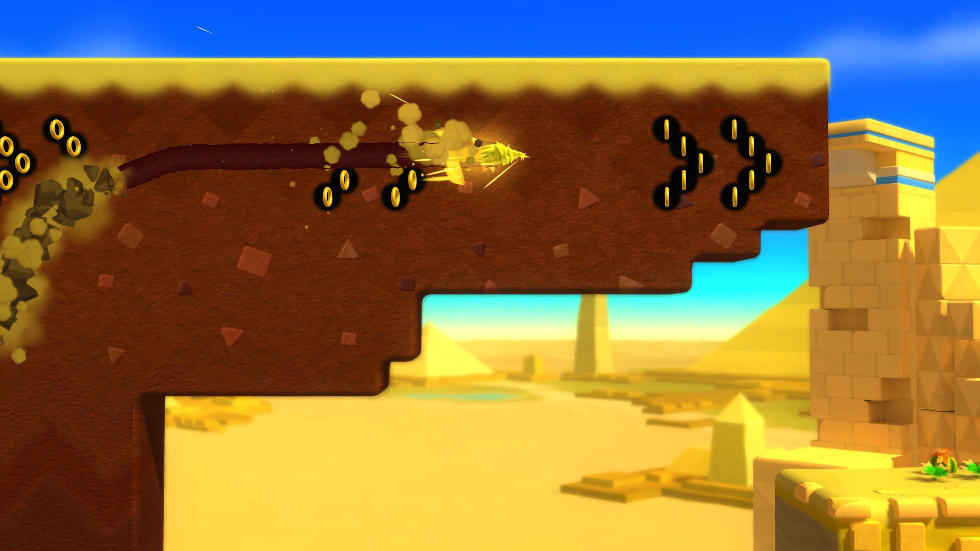 突然會有巨大龍捲風從背後襲來的恐怖金字塔地帶,緊追在後的龍捲風將對所有物體進行破壞並不斷地朝著玩家逼近而來。在關卡後半等待著我們的,則是必須透過黃色鑽頭的力量潛入地面之下挖掘前進的地下區域。是一個以逼近的龍捲風和地下挖掘動作組合構成的動作關卡。