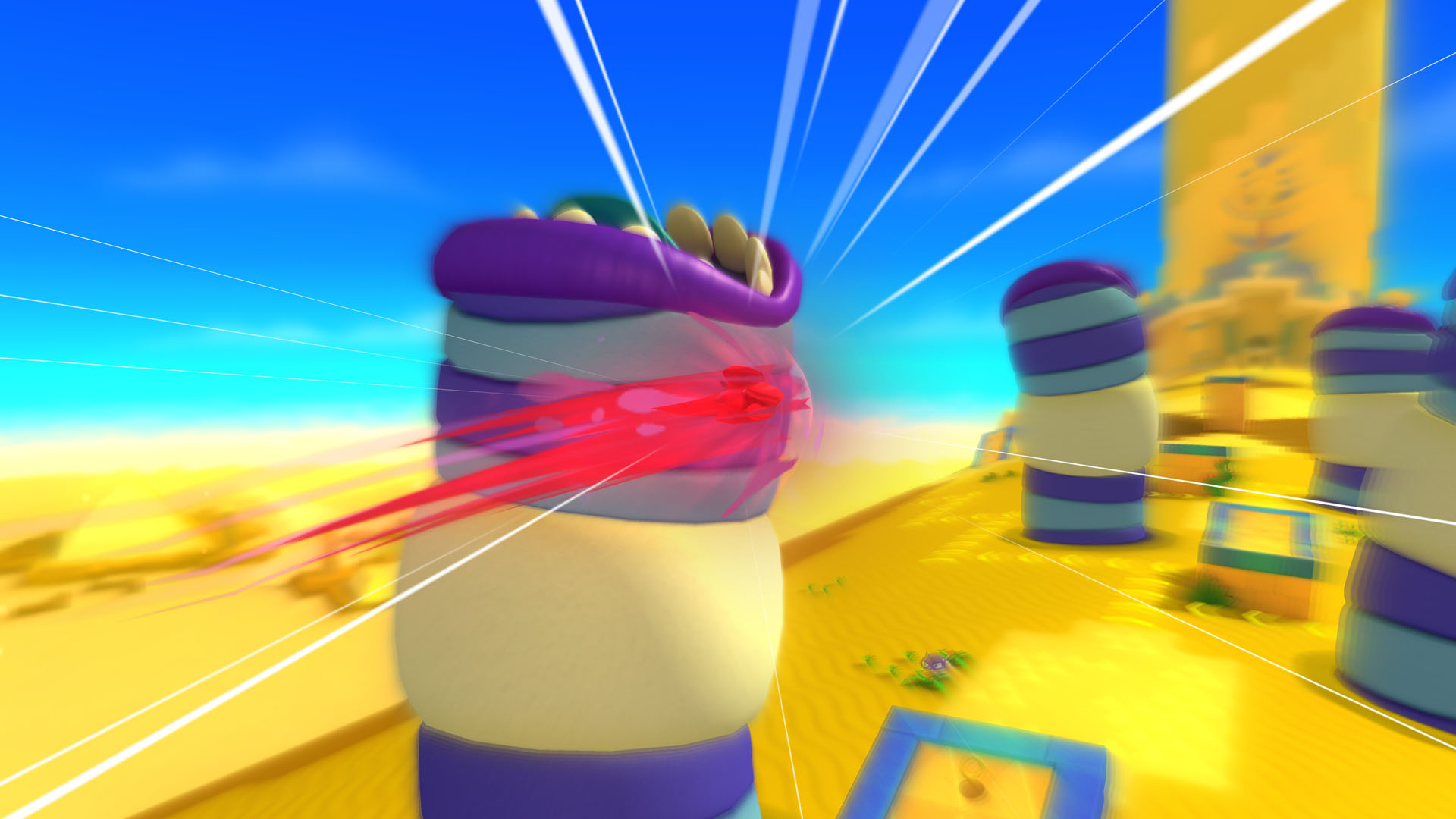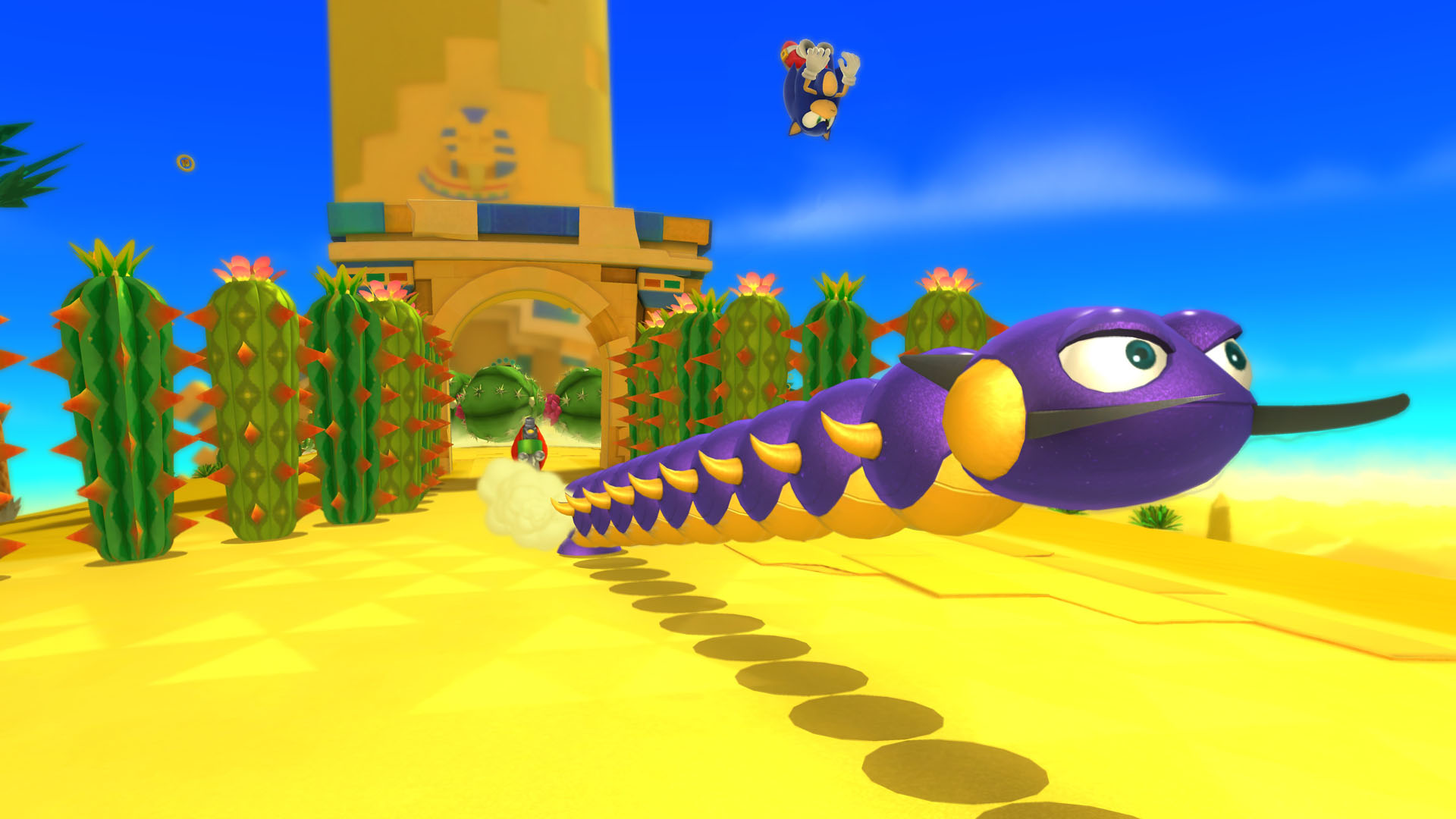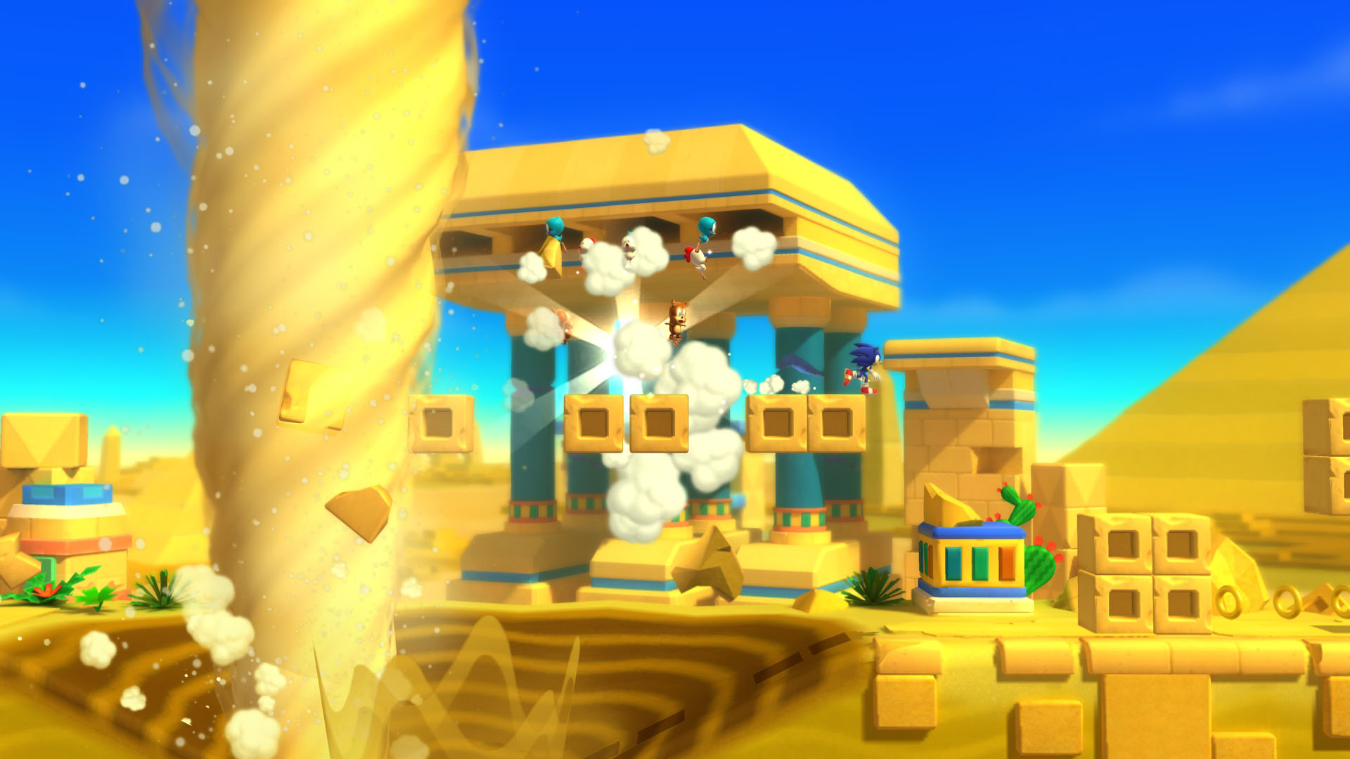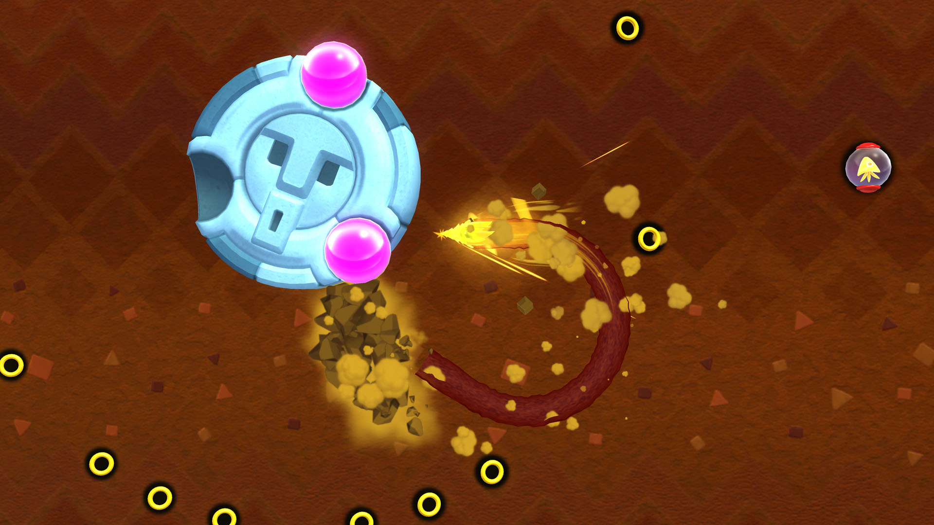 突然會有巨大龍捲風從背後襲來的恐怖金字塔地帶,緊追在後的龍捲風將對所有物體進行破壞並不斷地朝著玩家逼近而來。在關卡後半等待著我們的,則是必須透過黃色鑽頭的力量潛入地面之下挖掘前進的地下區域。是一個以逼近的龍捲風和地下挖掘動作組合構成的動作關卡。