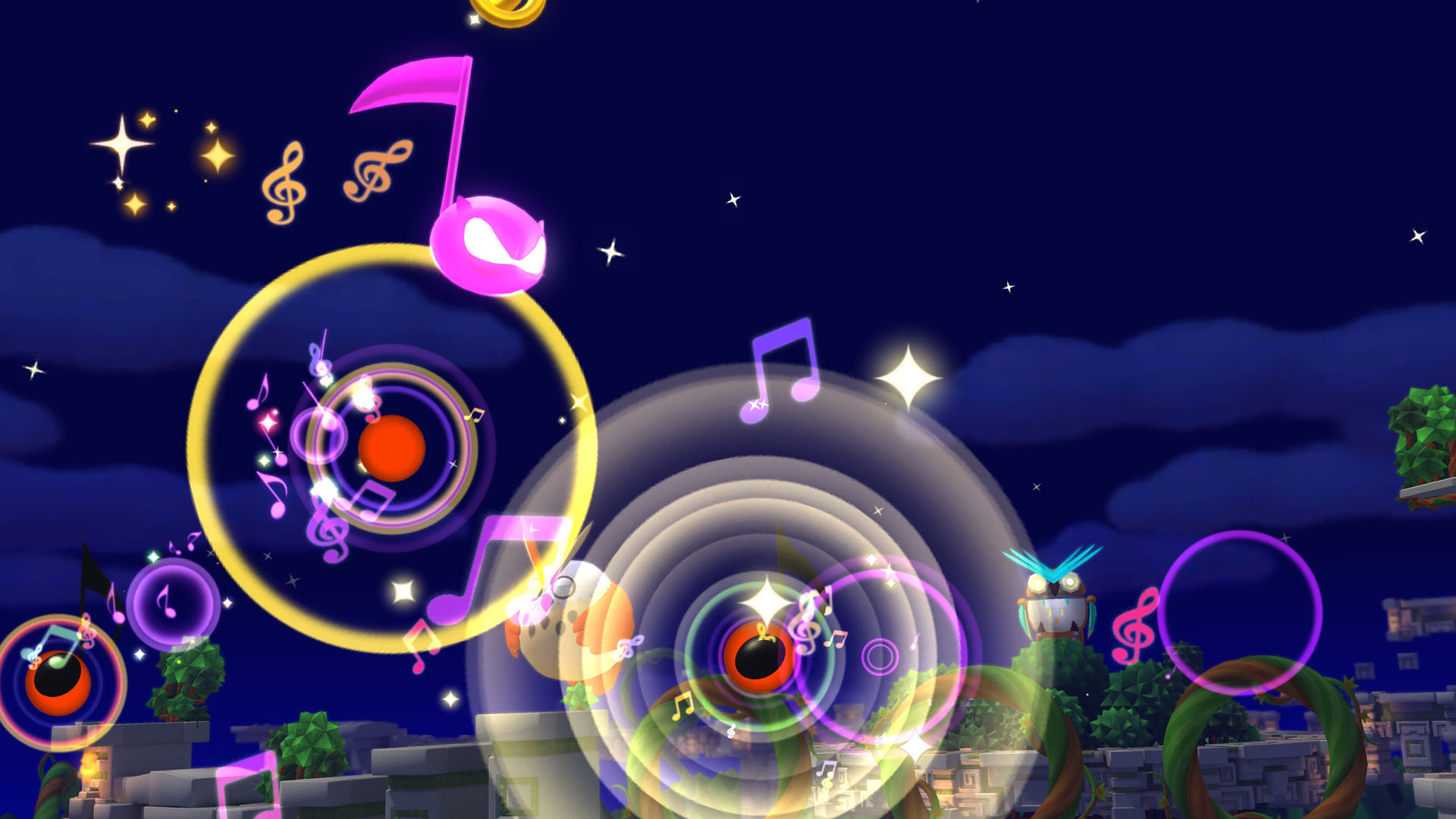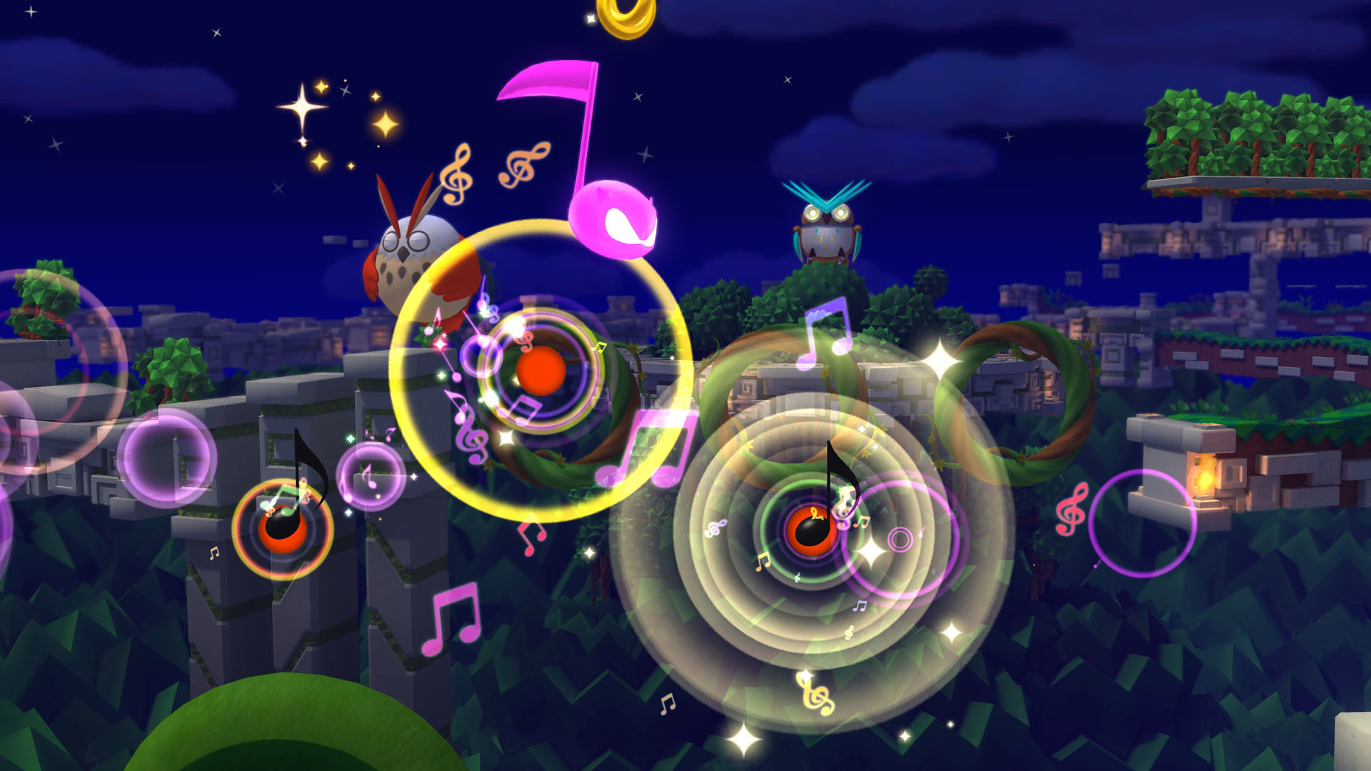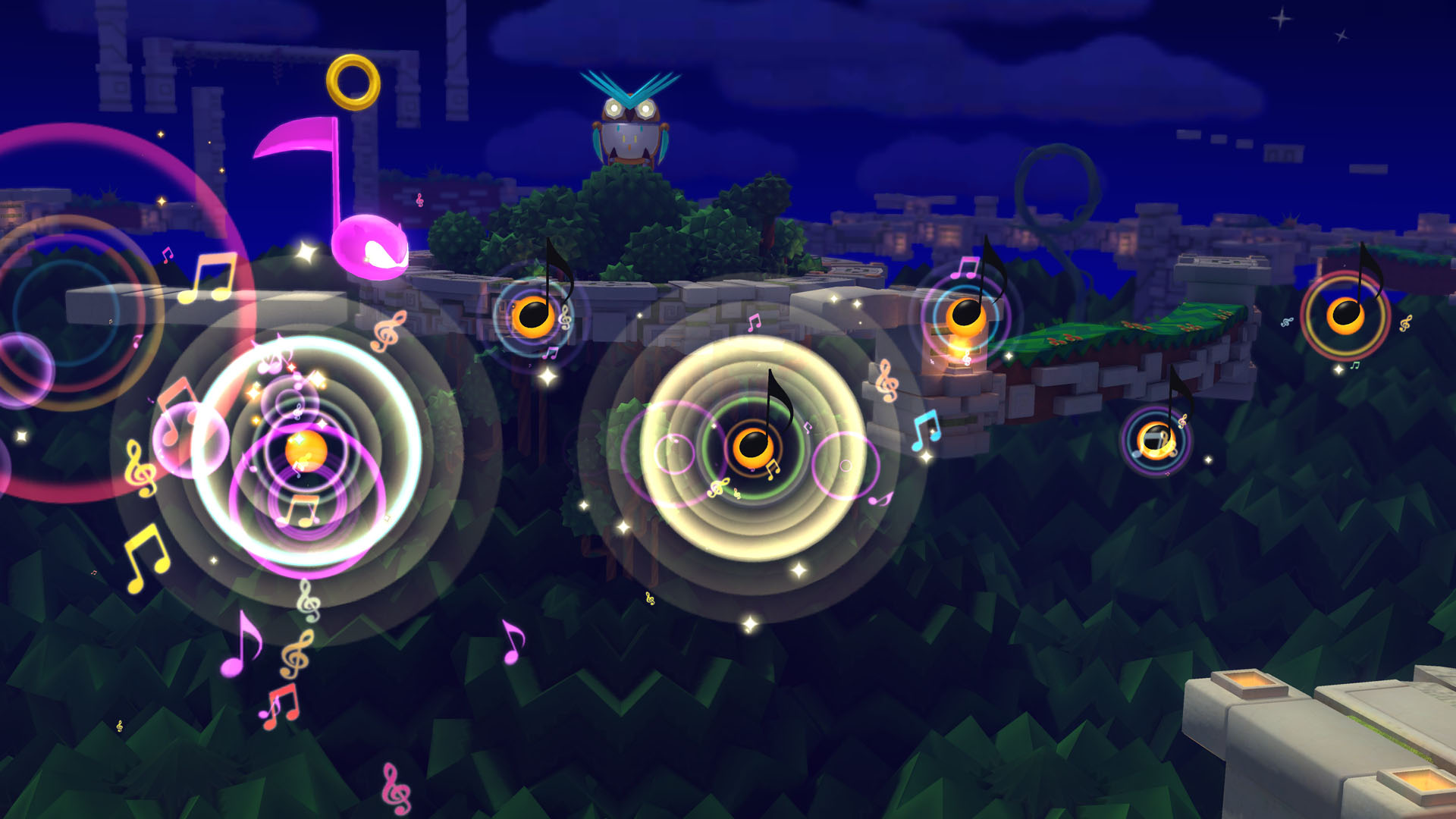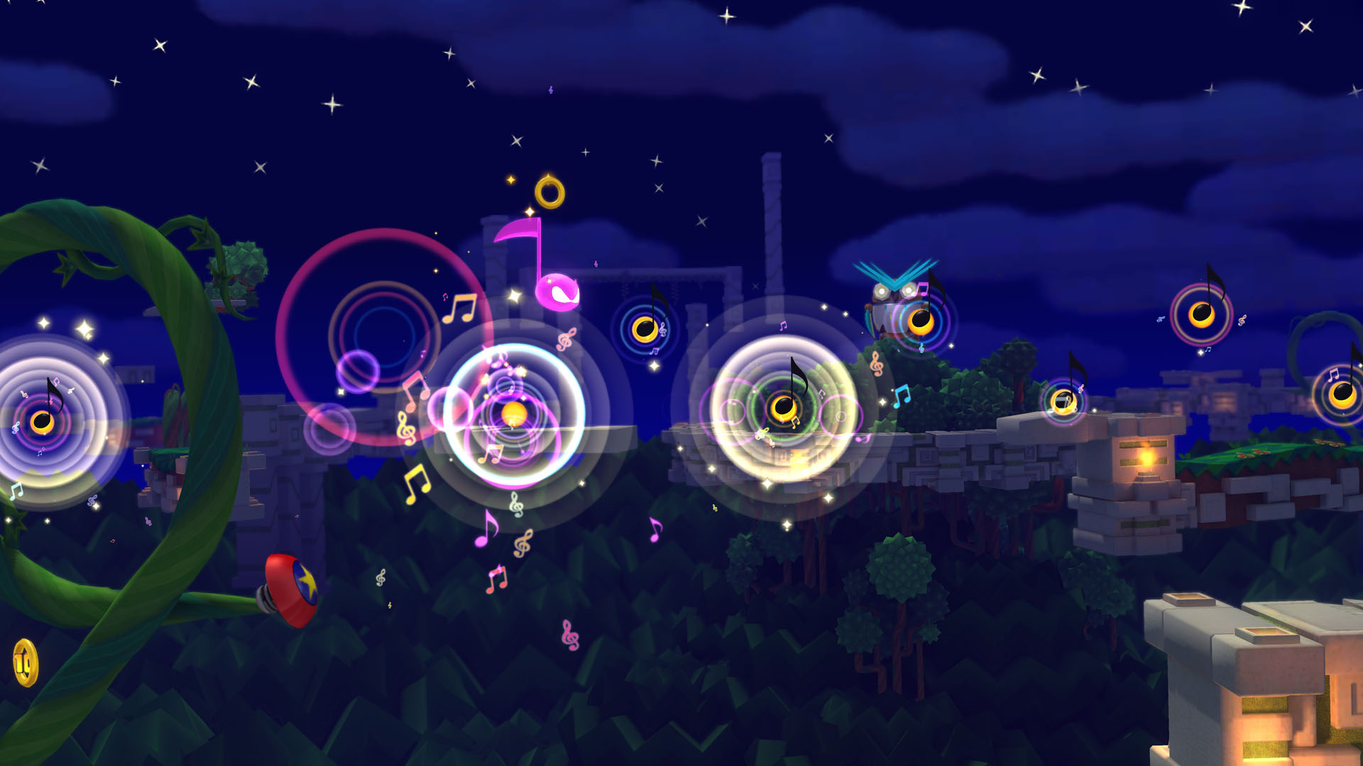 索尼克將可藉由「緋紅威斯普」的力量化身為音符在空中進行有節奏性的跳躍。碰觸 Wii U遊戲平板上的觸碰螢幕還能夠自由的指定其跳躍方向。是一種能夠配合節奏來獲取金環(リング)的特殊繽紛力量。變身成節奏之後朝著畫面上的音符前進的話,說不定還能發現意想不到的驚喜!?