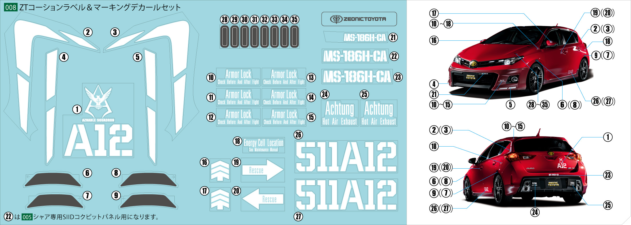 TOYOTA」專案所開發的角色主題改裝車,以 TOYOTA AURIS 車款為基礎,添加各種夏亞主題改裝套件而成。預定 10 月 1 日推出,以 AURIS RS "S Package" 搭配所有選購套件的價格為 330 萬 6825 日圓(※)。