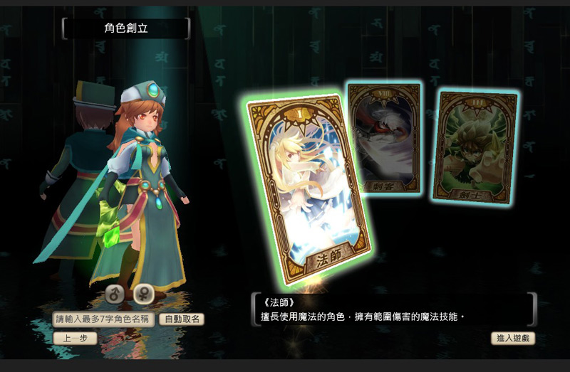 再者,「法師」則是以「魔法之源」做為專用天生技,攻擊時機率觸發,自身傷害增幅增加,攻擊時,以「魔法」攻擊為主,擅長範圍打擊。