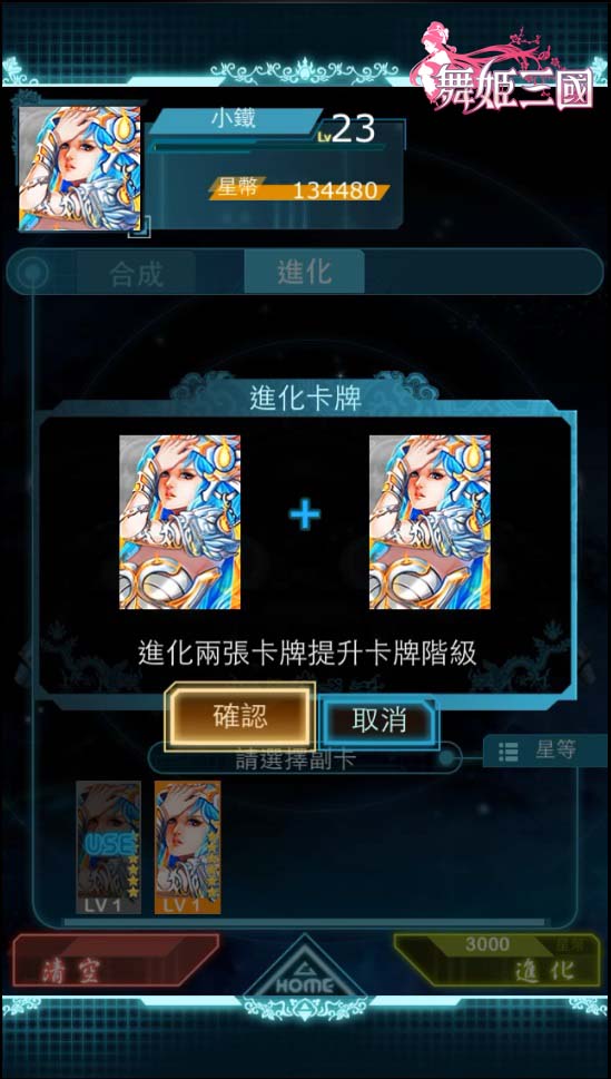 合成系統:想要愛姬武將,能夠以一擋百?強化合成便是最快途徑!將欲培養的核心武將當作主卡,消耗低階的素材卡轉化成經驗值,就可以讓主卡升級,並提升各項能力值。