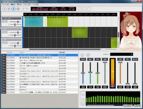 「CeVIO Creative Studio」是具有「文本朗讀功能」及「歌聲合成功能」的聲音創作軟體。主打不僅只要簡易的操作即可使「佐藤紗紗羅」歌唱,也可以利用軟體合成音來做歌曲的情感表現。現在網站上開放免費下載、9 月 26 日時則會追加販售功能更加強大的男女各一代言角色公開版本。